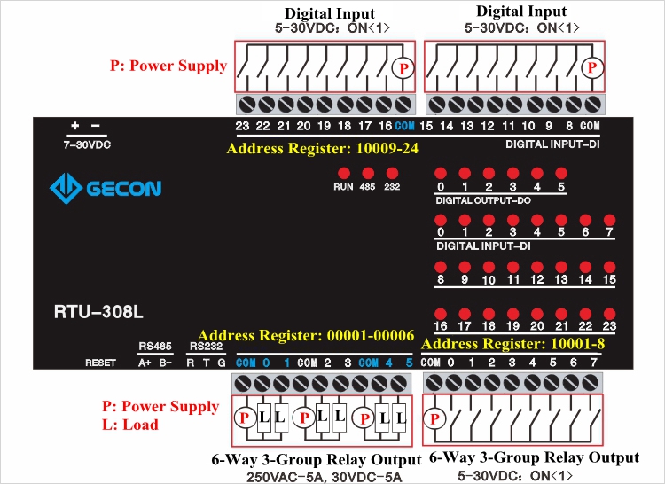 24DI 6DO Data Acquisition For Modbus RTU Industrial Controller RTU-308L 24DI + 6DO [RS485]
