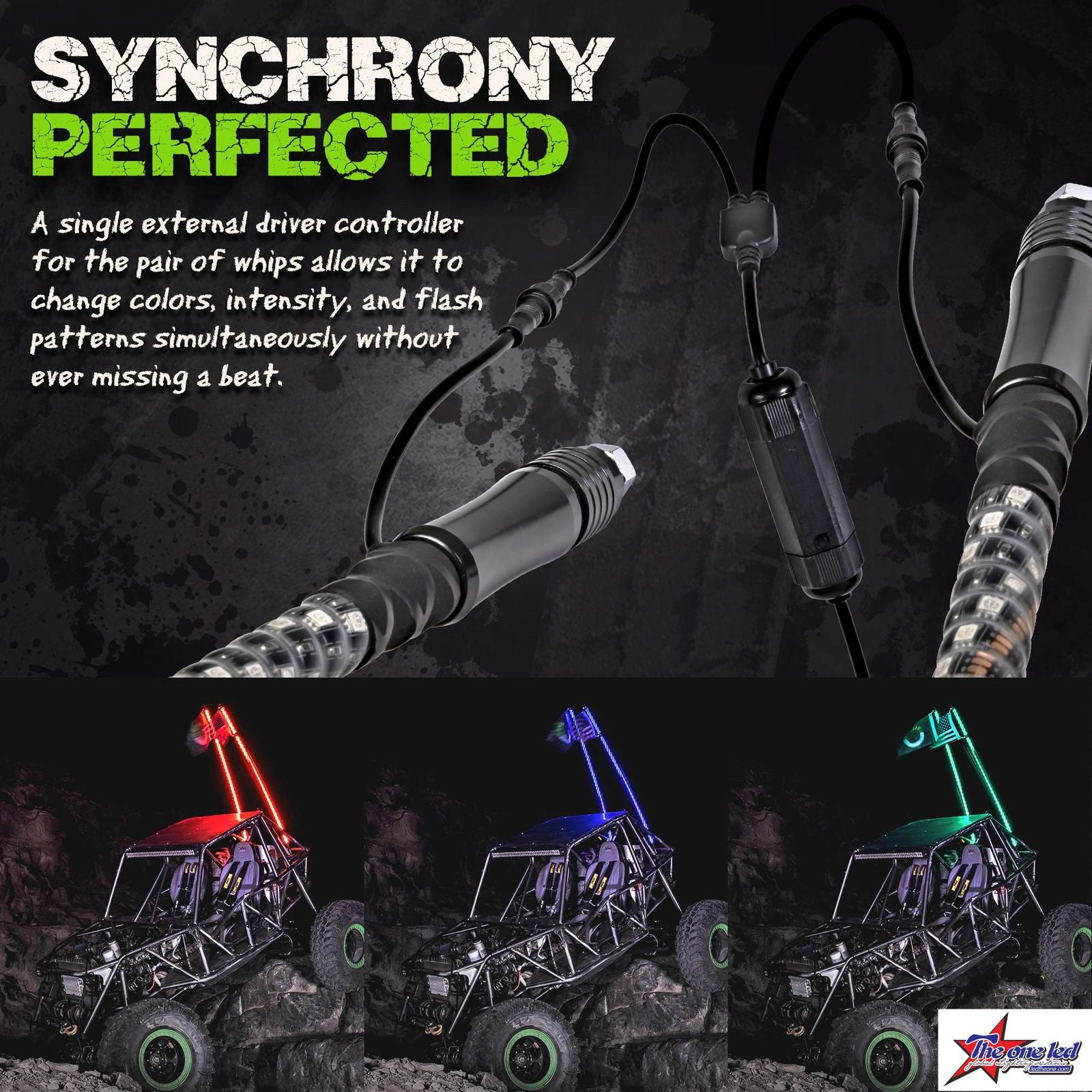 2pcs 4FT/1.2M Color LED Whips 360° Wrapped+Quick Release Base Remote Control for Buggy ATV/UTV NA102