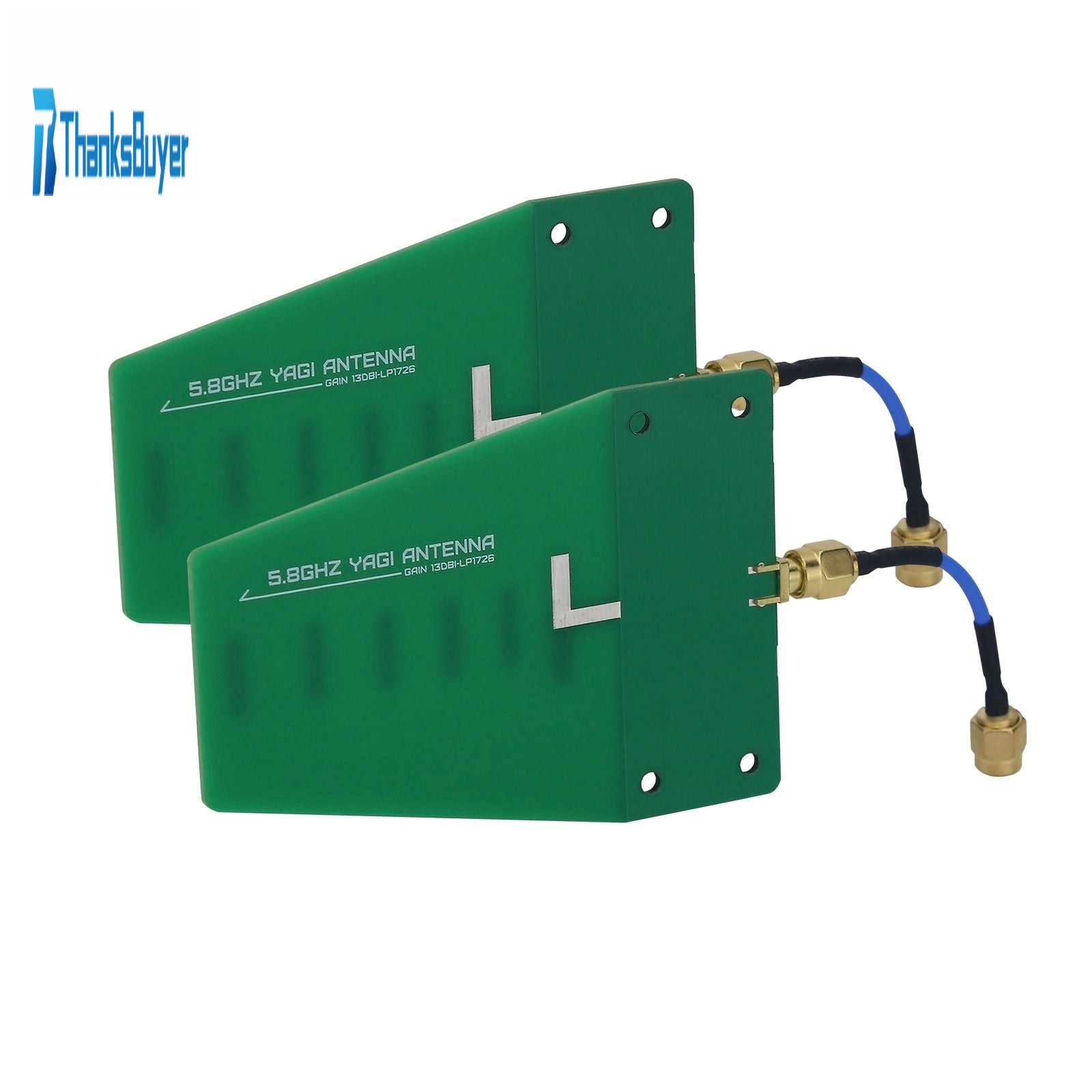 This is a pair of HamGeek HG1726A-5.8G directional antennas. The antennas are suitable for long-distance internet access, WiFi base station direction testing, Bluetooth direction testing, drone direction testing, and network bridge connection and transmission. They feature a gain of 13dBi.