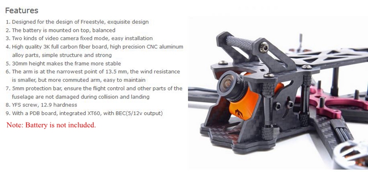 - Only quadcopter frame and PDB distribution board are included. Other accessories like motor, flight controller, and camera are not included in this package.