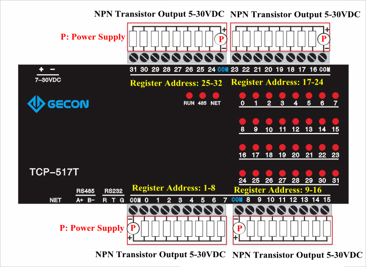 32-Channel NPN Transistor Data Acquisition For Modbus TCP Module TCP-517T 32NPN Ethernet+RS485+RS232