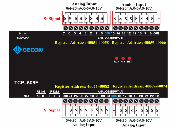 32AI ADC Data Acquisition Module For Modbus TCP RTU Protocols TCP-508F [Ethernet + RS485 + RS232]