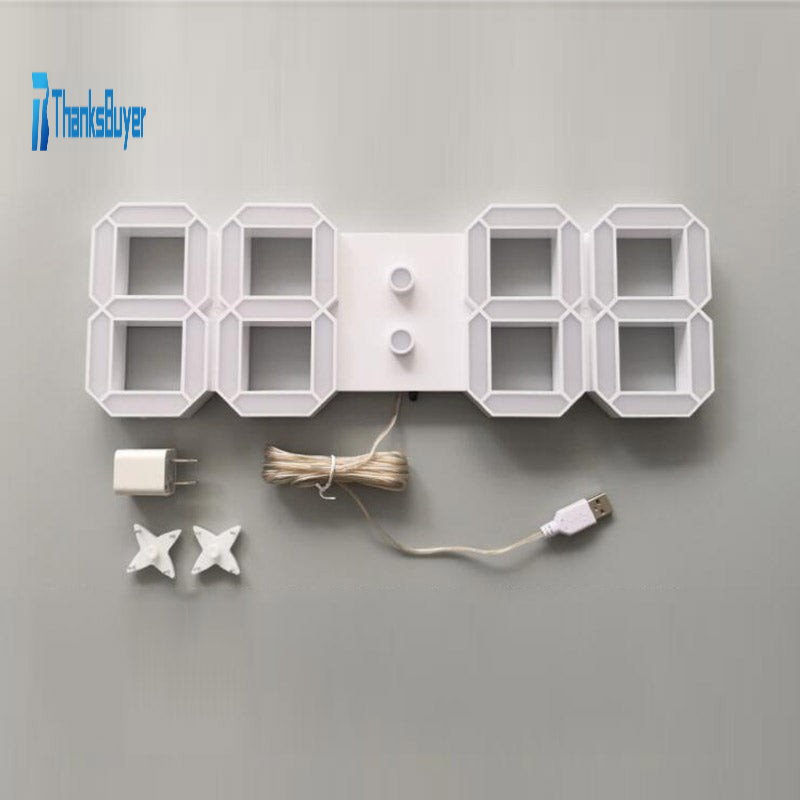 3D LED Clock Electronic Luminous Clock WiFi Version for Living Room Decoration Warm White Light White Shell