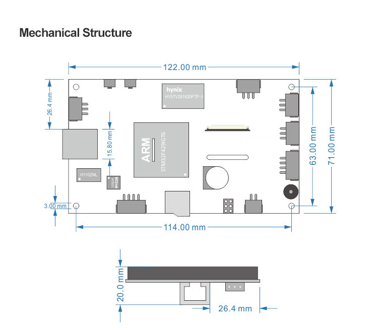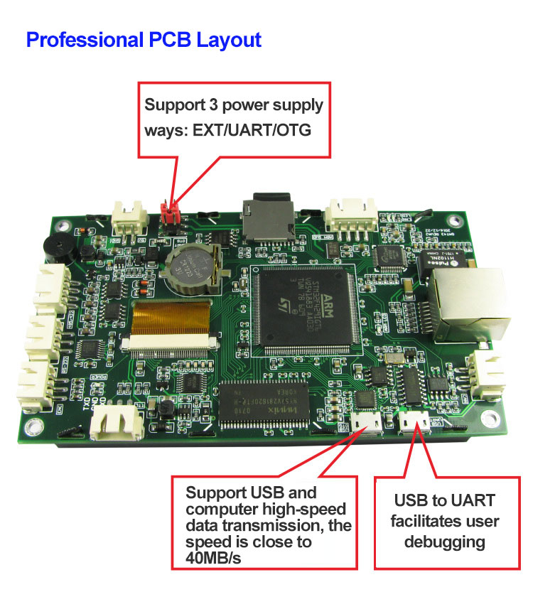 - Built-in high-speed USB OTG interface, as device communication speed approaches 40M bytes / second;