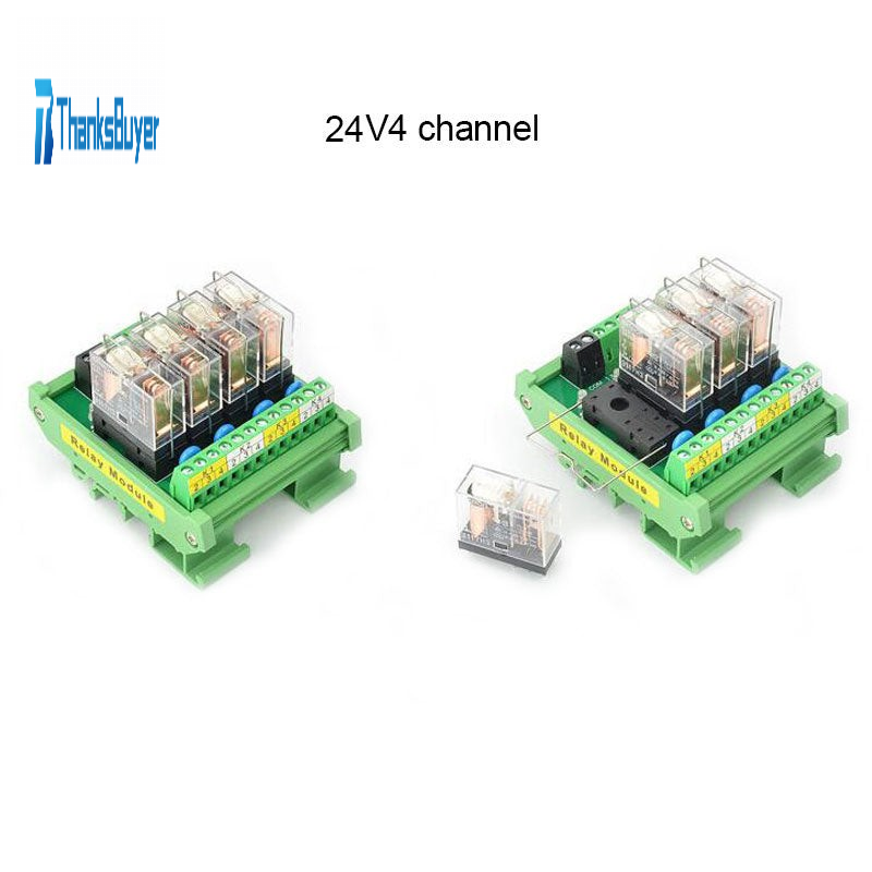 4 Channel OMRON Relay Module SPDT 4 Ways Driver Board Socket DC 24V 16A 1NO+1NC 35mm Din Rail Mount