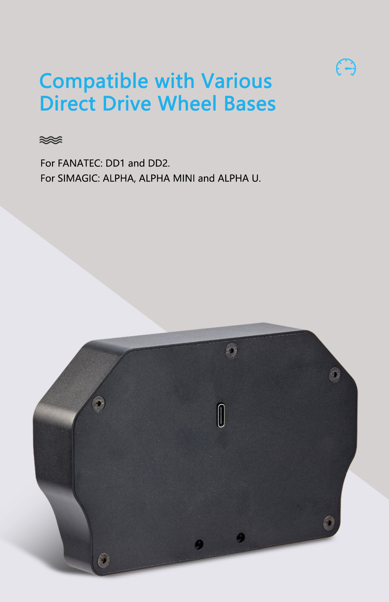 - Compatible with various direct drive wheel bases, such as for FANATEC DD1 and DD2, and SIMAGIC ALPHA, ALPHA MINI and ALPHA U
