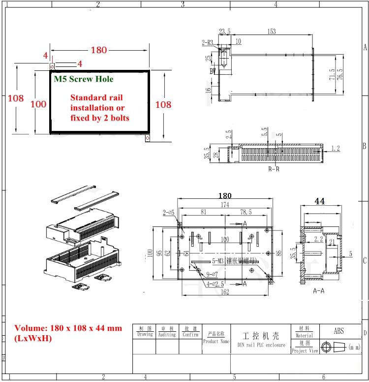 - Dimensions: Volume: 180 x 108 x 44 mm (LxWxH)