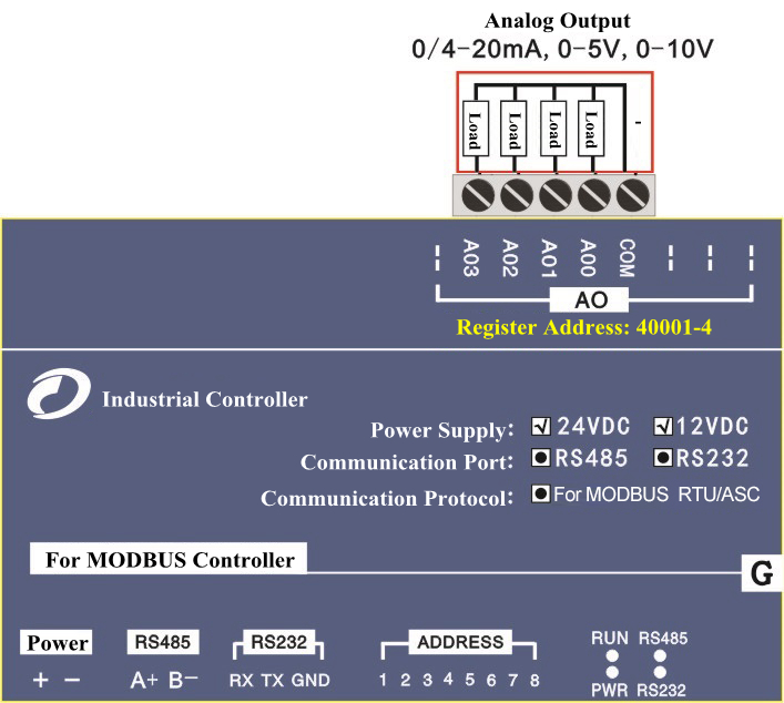 Support RS232, RS485 interface, for Modbus protocol touch screen, text screen.