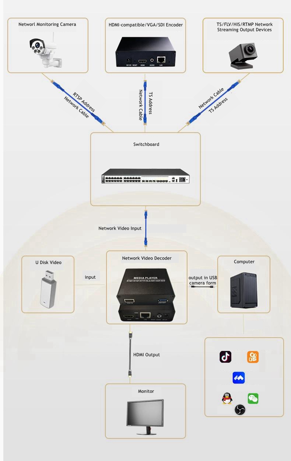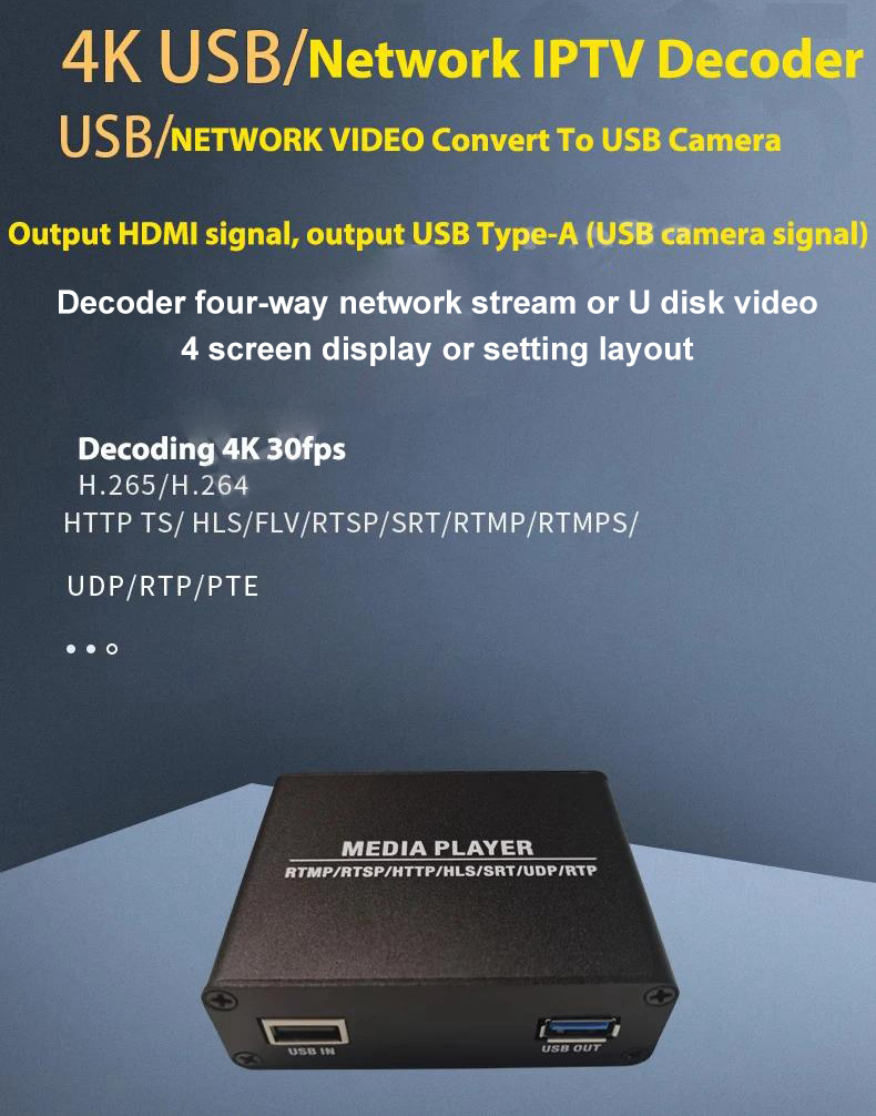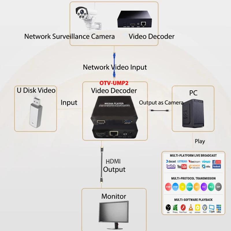 4K 30FPS Network Camera Video Decoder H.265/H.264 HDMI-compatible USB Decoder for Live Streaming
