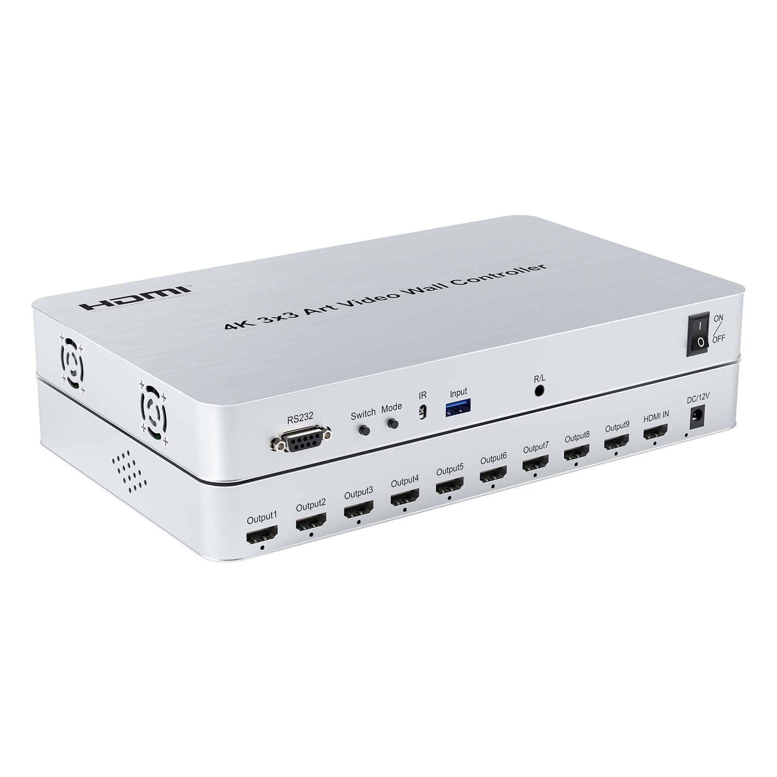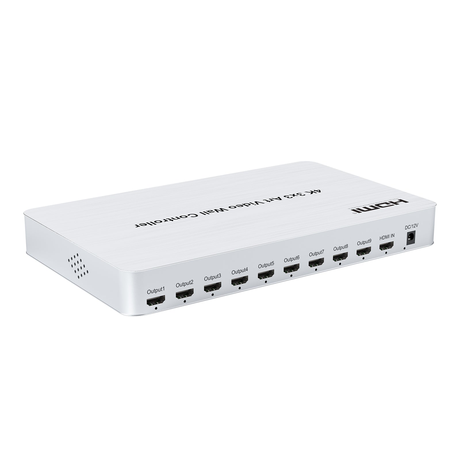 It enables 9-channel HDMI output. Its main function is to divide a complete HDMI high-definition image signal into 9 blocks and then assign them to 9 video display units (such as rear projection units and LCD TVs). It can also display a group of pictures with a variety of splicing effects in high-definition, perfectly forming a multi-screen splicing. It is plug and play, without control software.