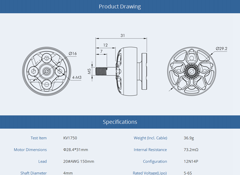 - Thoughtful design, guarding your flight. 12mm-length shaft matching with well-designed nut, not just reduce the motor weight, but also effectively protect shaft thread. Then you can fly freely. PS: Well-matched with most regular-size FPV quad propeller in the market.