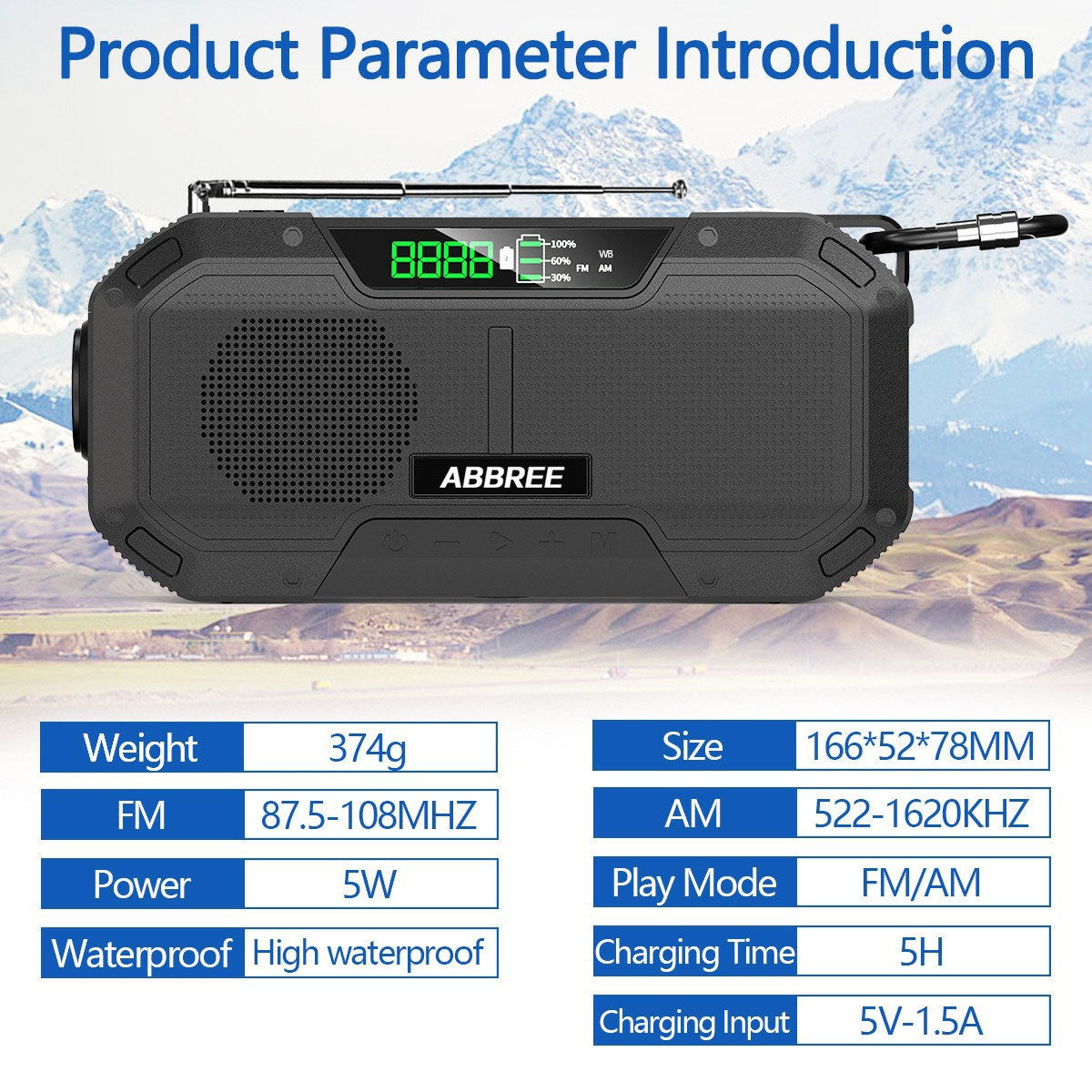 5000mAh EU Black Emergency Radio FM AM Radio with Solar Power Charging Flashlight Compass Alarm