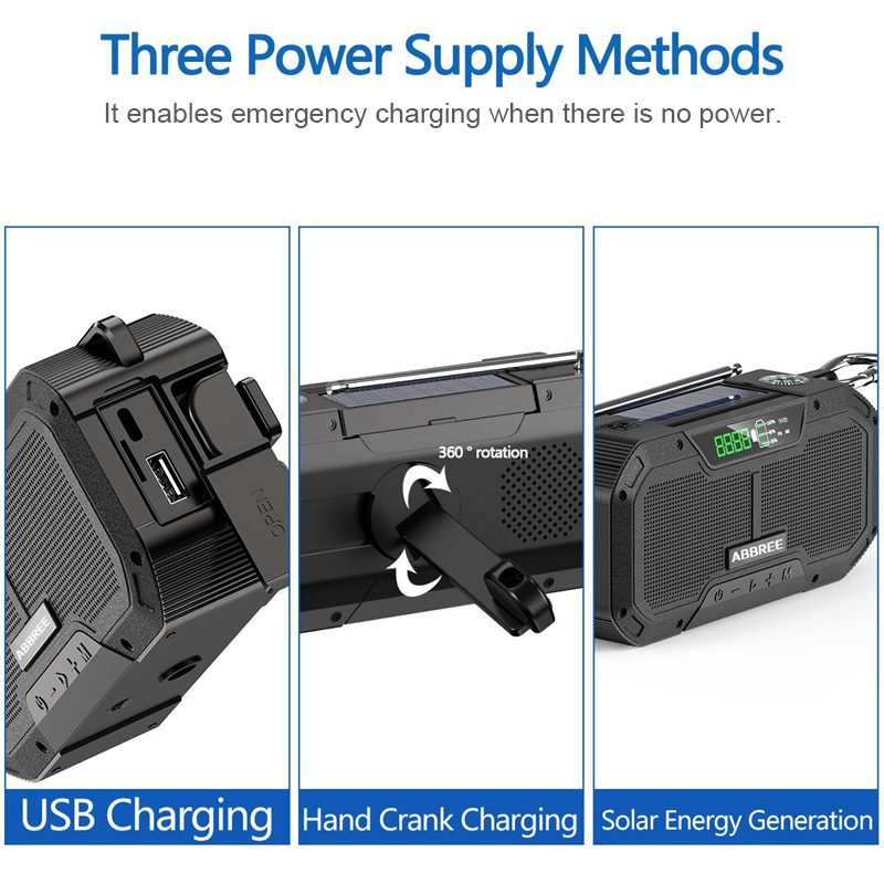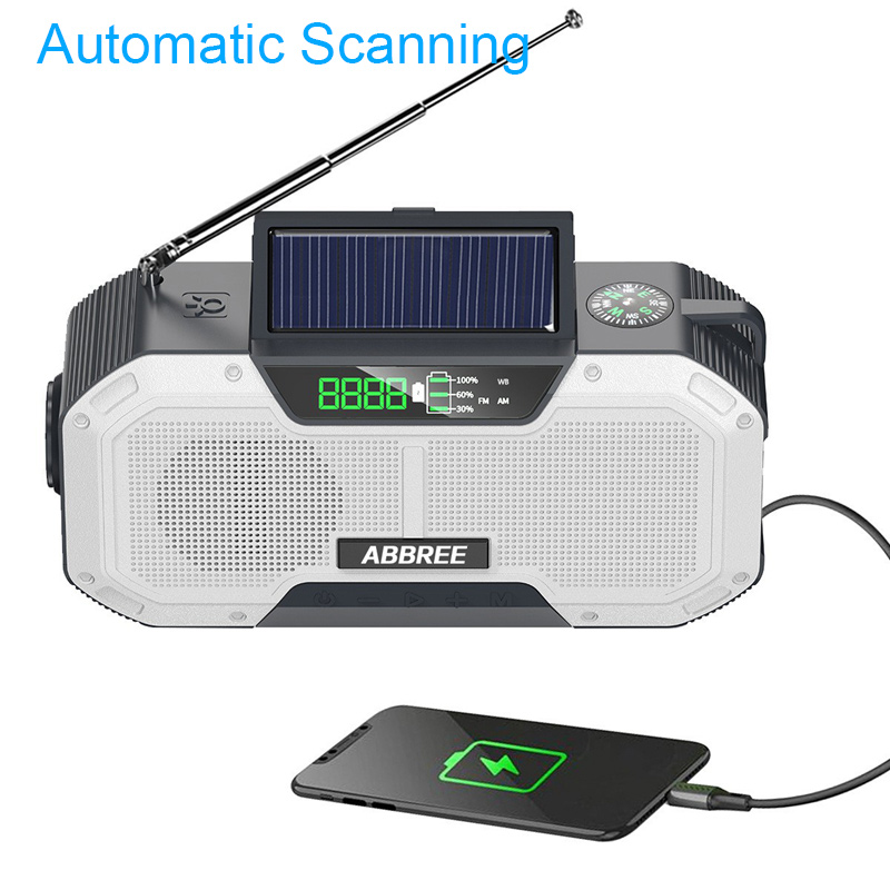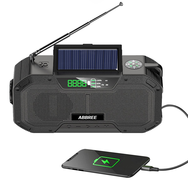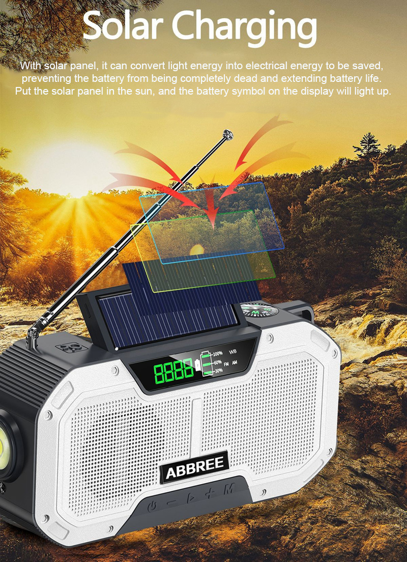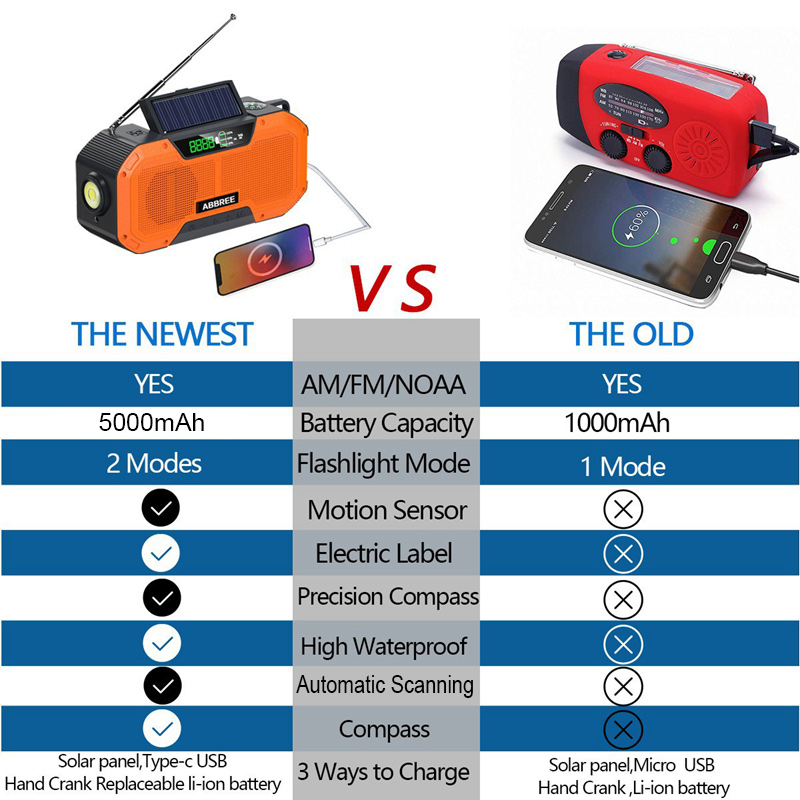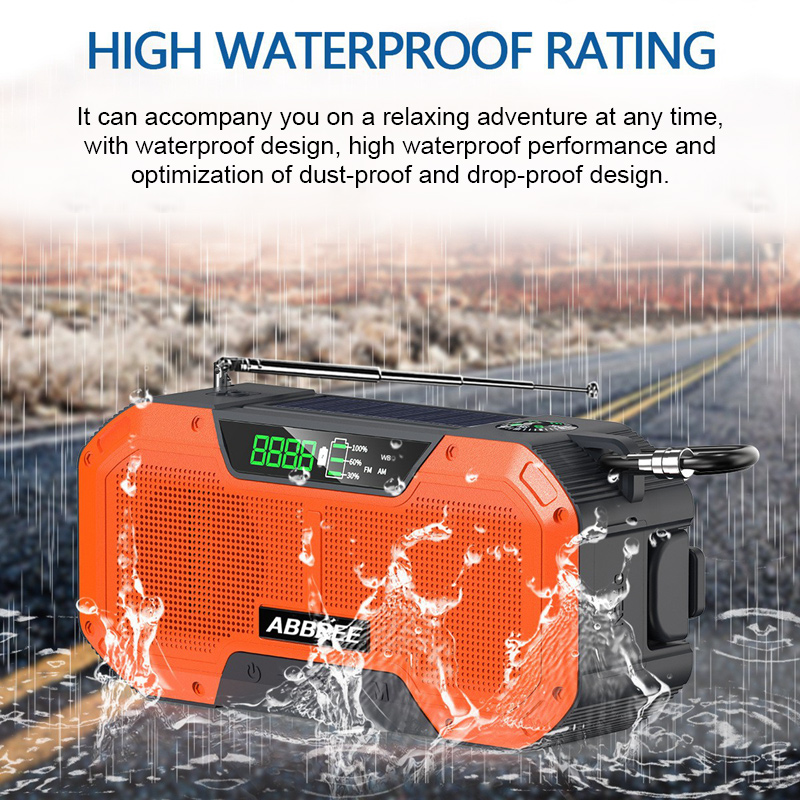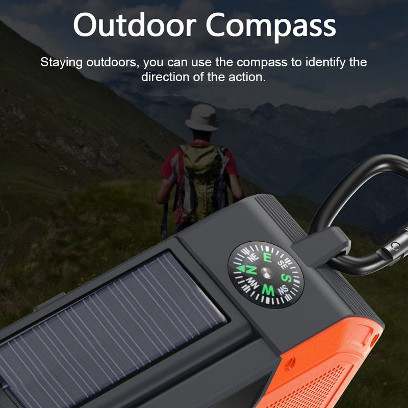 5000mAh EU Orange Emergency Radio FM AM Radio with Solar Power Charging Flashlight Compass Alarm