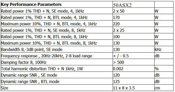 - Output power: 2x50W
