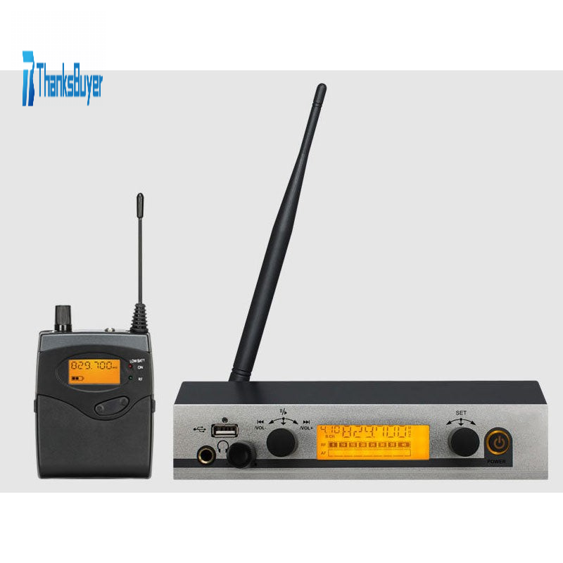 This wireless in ear monitor system is used in stage performance and sound broadcast. It can replace traditional complex sound monitoring equipment, achieving an admirable listening effect.