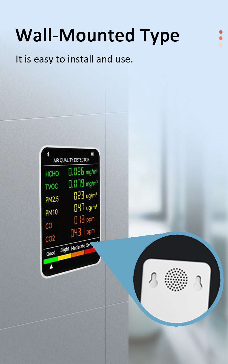 - Wall-mounted type: The air quality monitor can be used in many places. It is easy to install and use.