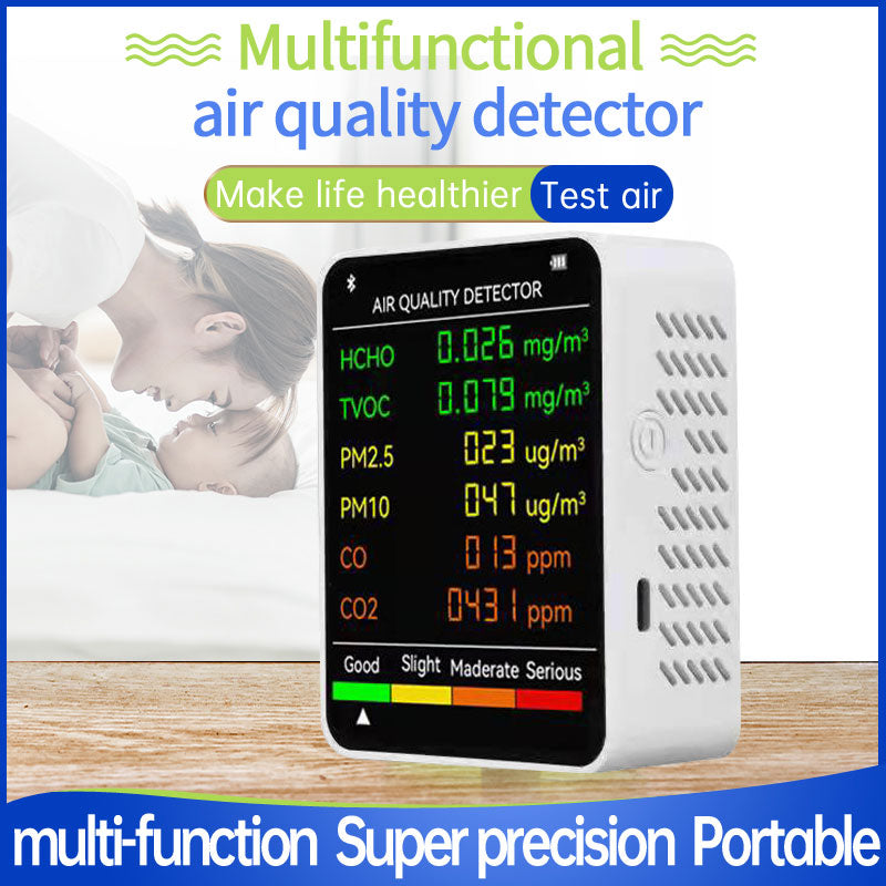 - Multifunctional air quality meter: It can be used to test HCHO, TVOC, PM2.5, PM10, CO and CO2.