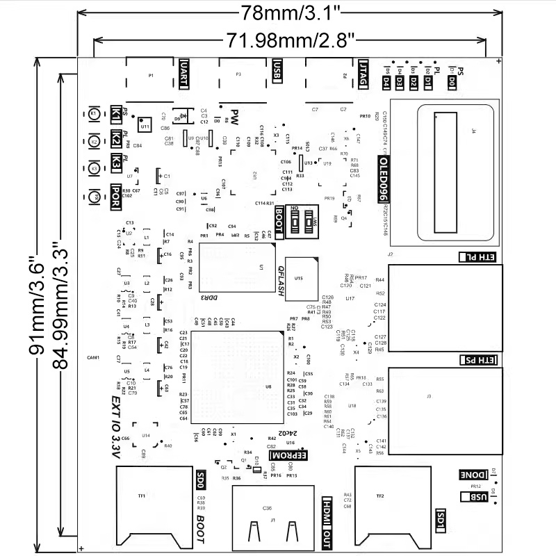 - Ethernet: Gigabit RTL8211E, RGM II interface, one ETH0 and one PL of PS
