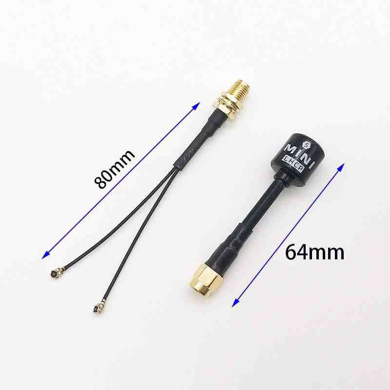 80mm Dual IPEX1 to SMA Male Adapter Cable + 64mm MINI5 LHCP Antenna (Black) for DJI O3 Air Unit