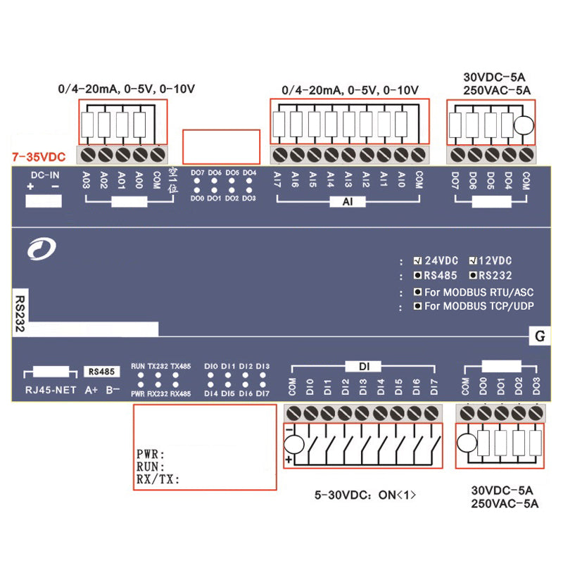 8AI + 4AO + 8DI + 8DO Ethernet IO Module Industrial Controller Data Acquisition Module TCP-508N