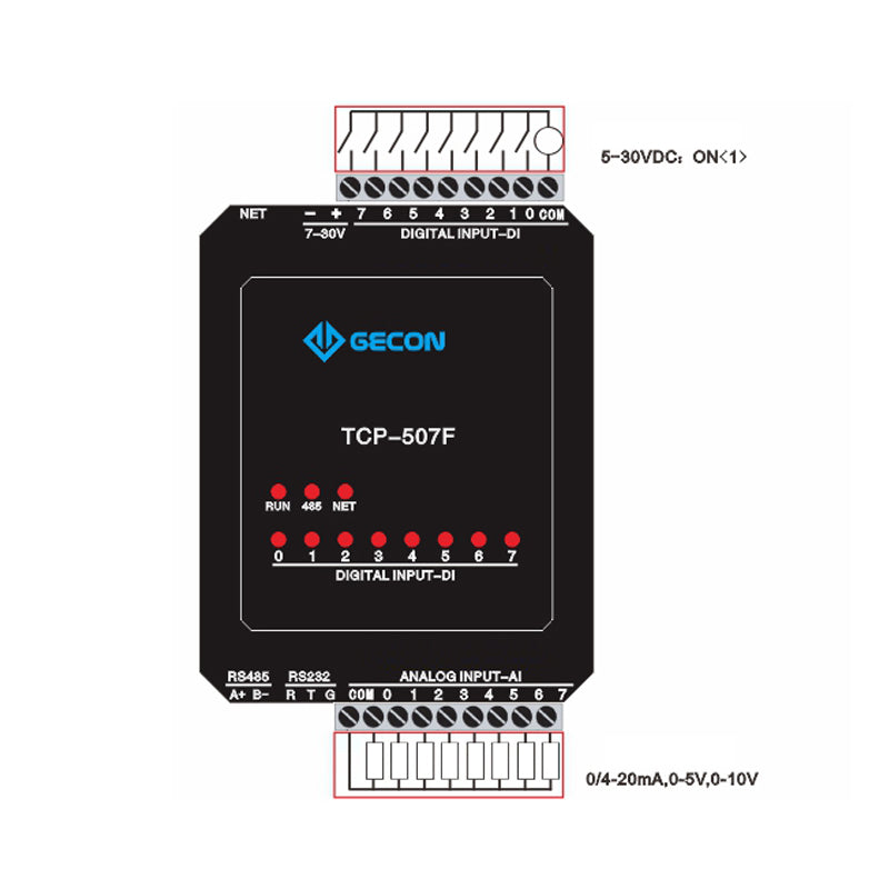 8AI + 8DI Industrial Controller For Modbus TCP Ethernet Module TCP-507F Ethernet Communications