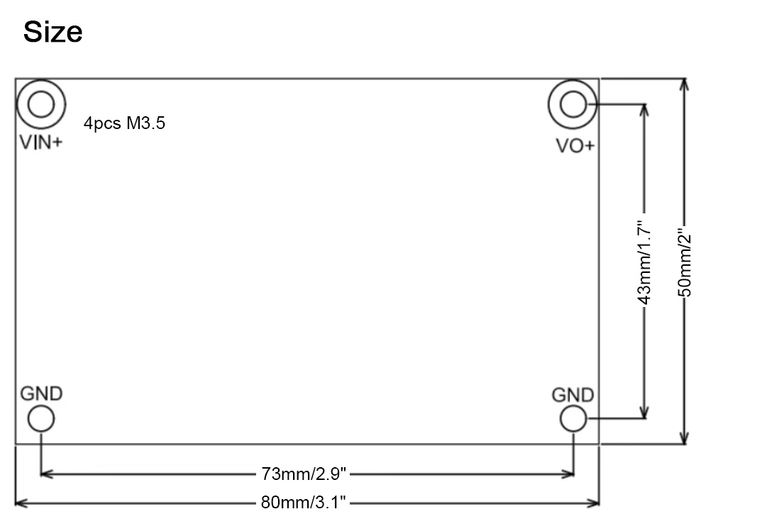 6. It is recommended to connect adjusted output voltage with a resistive load (dummy load) with small current to ensure the real-time adjustment of output voltage potentiometer, otherwise the output voltage will change slowly and the adjustment value will be inaccurate.