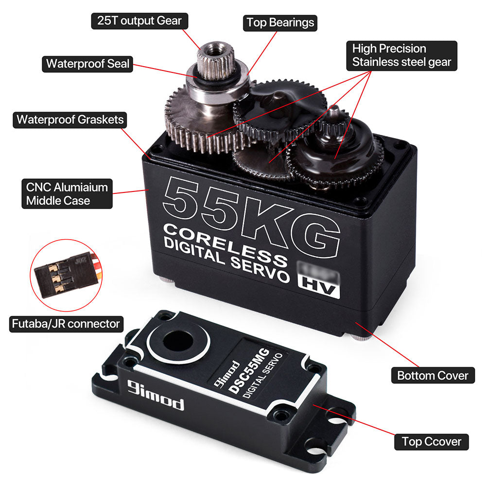 9imod 55KG-180 Degree Coreless Digital High Torque Servo Motor IP67 Waterproof with High Precision Metal Gear for RC Cars