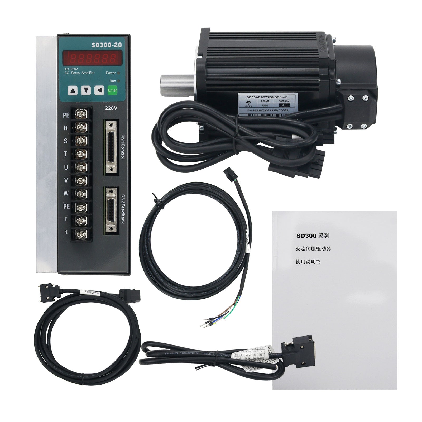 AC 220V Servo Motor Driver Kit 750W 3000RPM Servo Motor Kit For CNC Industrial Automation & Control