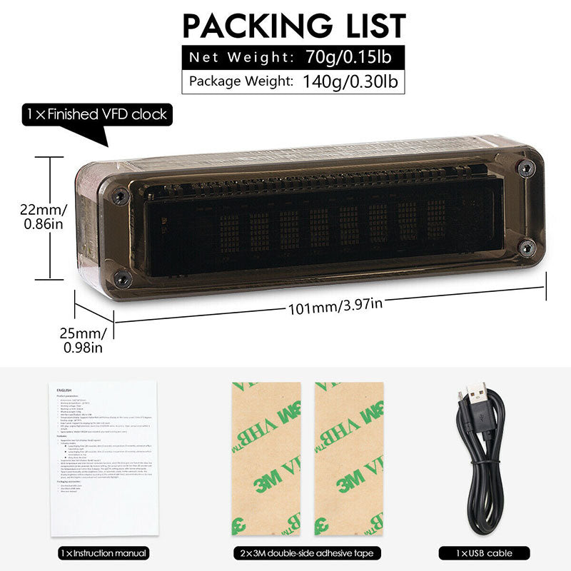 Acrylic Mini VFD Clock Vacuum Fluorescent Display Retro Tube Desk Shelf Clock VFD8