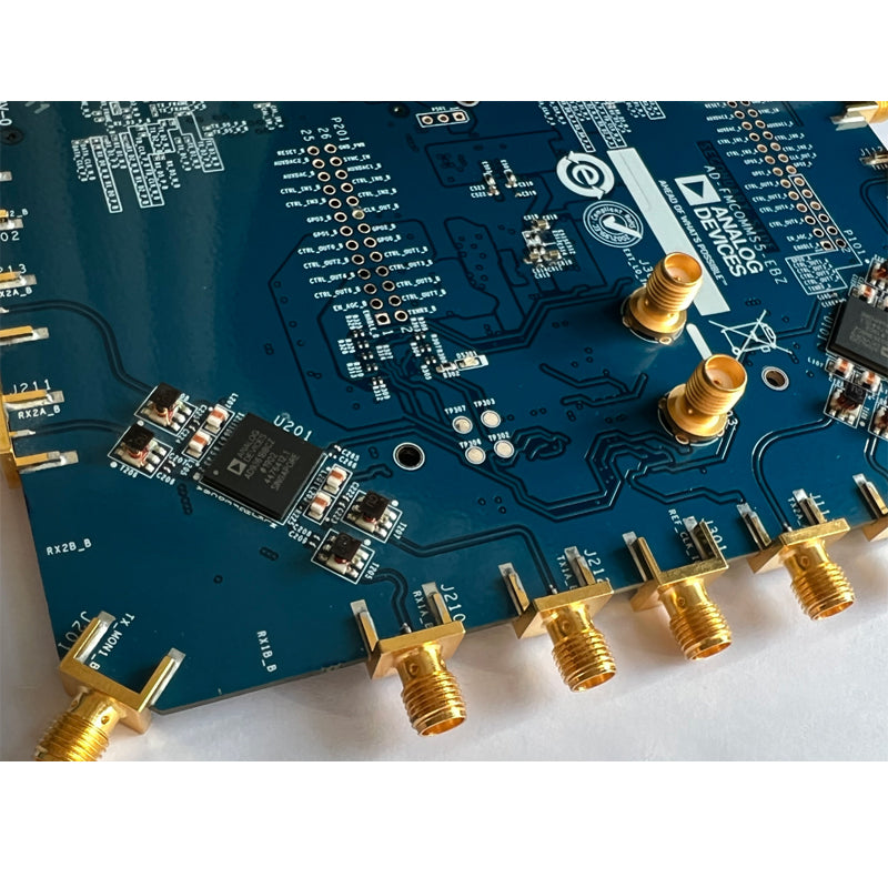 Because the AD-FMCOMMS5-EBZ supports both narrow and wideband input and output connectivity, it provides RF engineers the ability to connect the AD9361 to a RF test bench (vector signal analyzer, signal generator, etc.) and measure narrowband performance, as well as providing software and system engineers the ability to quickly prototype across the full 6 GHz operating range. Additionally the AD-FMCOMMS5-EBZ allows for both AD9361 devices to receive an on-board generated external LO signal, which can provide improved RF performance.