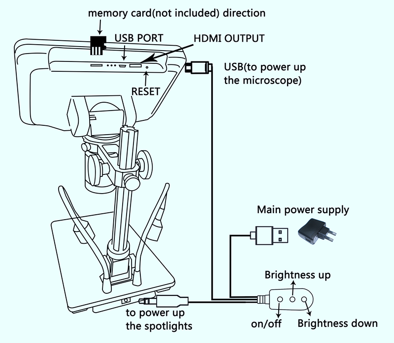 - Foldable Stand: The microscope stand can move back and forth, providing enough working space. The minimum focusing distance is 5cm.