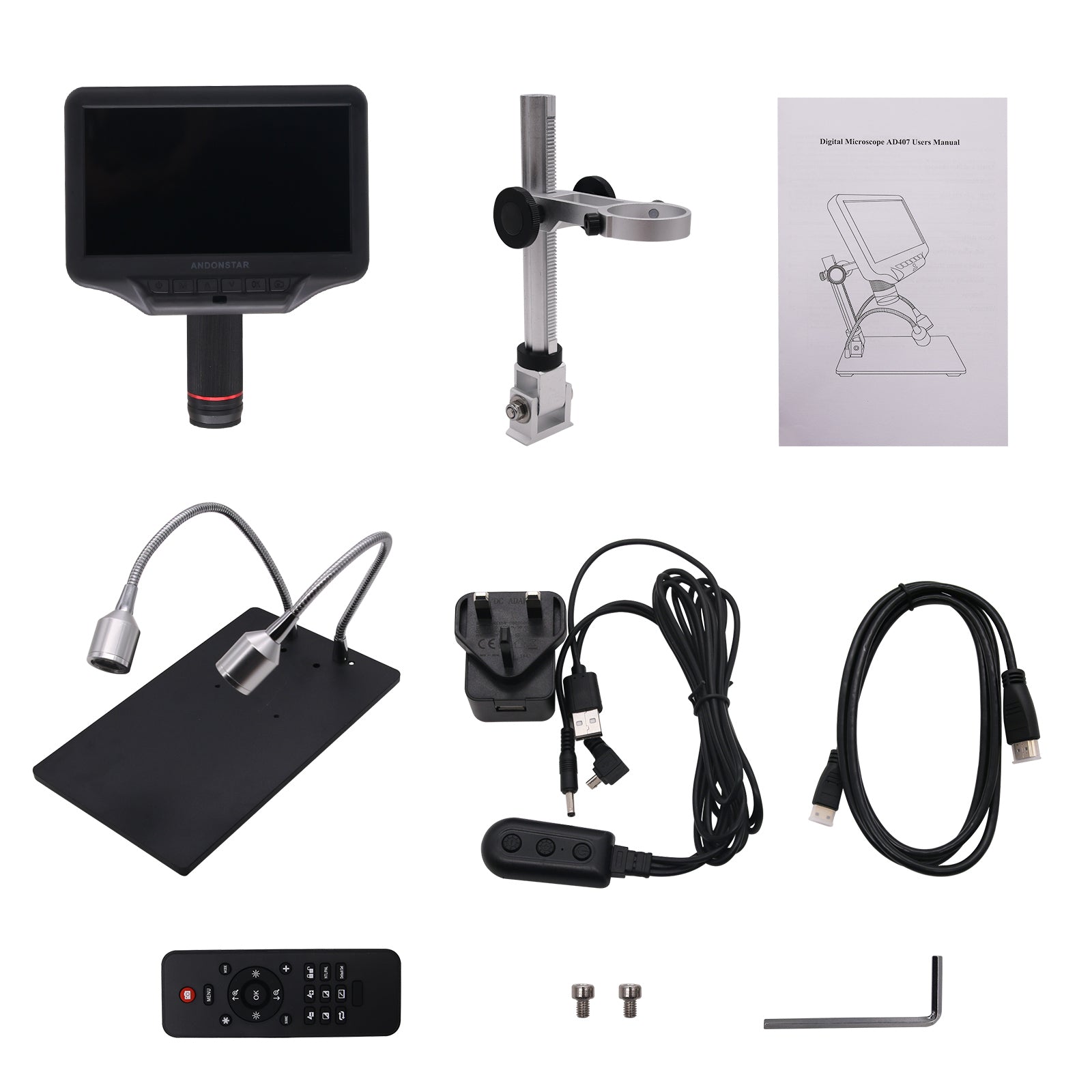 AD407 Andonstar Digital Microscope HDMI 270X 4MP 3D Effect Adjustable Stand Monitor 7" Screen LEDs