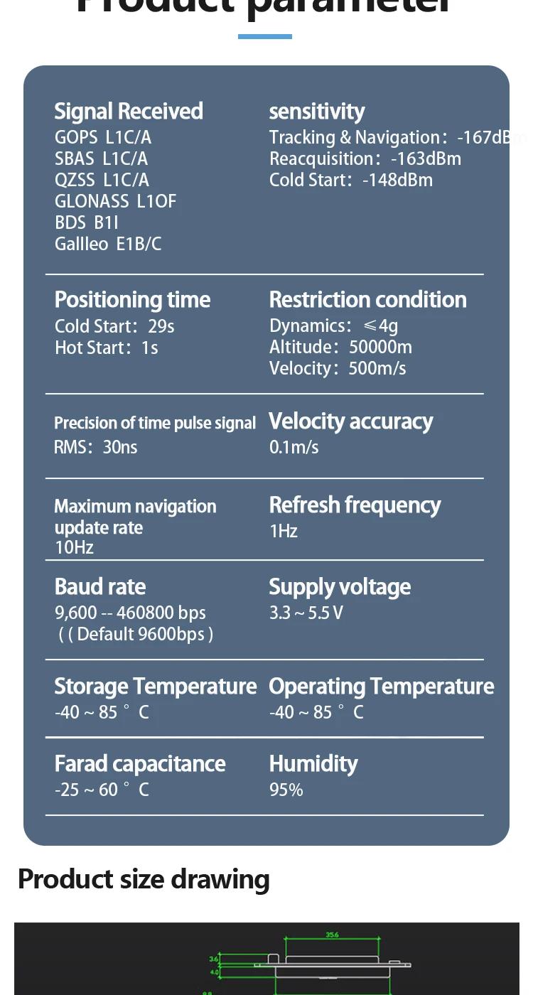 - Frequency range: GPS L1C/A, SBAS L1C/A, QZSS L1C/A, GLONASS L1OF, BDS B1I, GALILEO E1 B/C