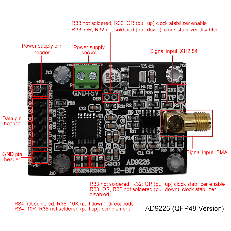 AD9226 QFP48 Version High-Speed ADC Module 65M Sampling Data Acquisition For FPGA Development Board