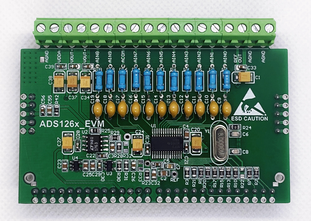 * Pre-filter: low-temperature drifting metal film resistor + C0G multilayer ceramic capacitor constitute a low-pass filter. This improves total harmonic distortion, reduces resistive and capacitive electronic thermal noise, and provides the ADC with an excellent anti-aliasing filter that avoids aliasing noise contaminating the signal. At the same time, it eliminates the effects of overdrive signals outside of the filter bandwidth.