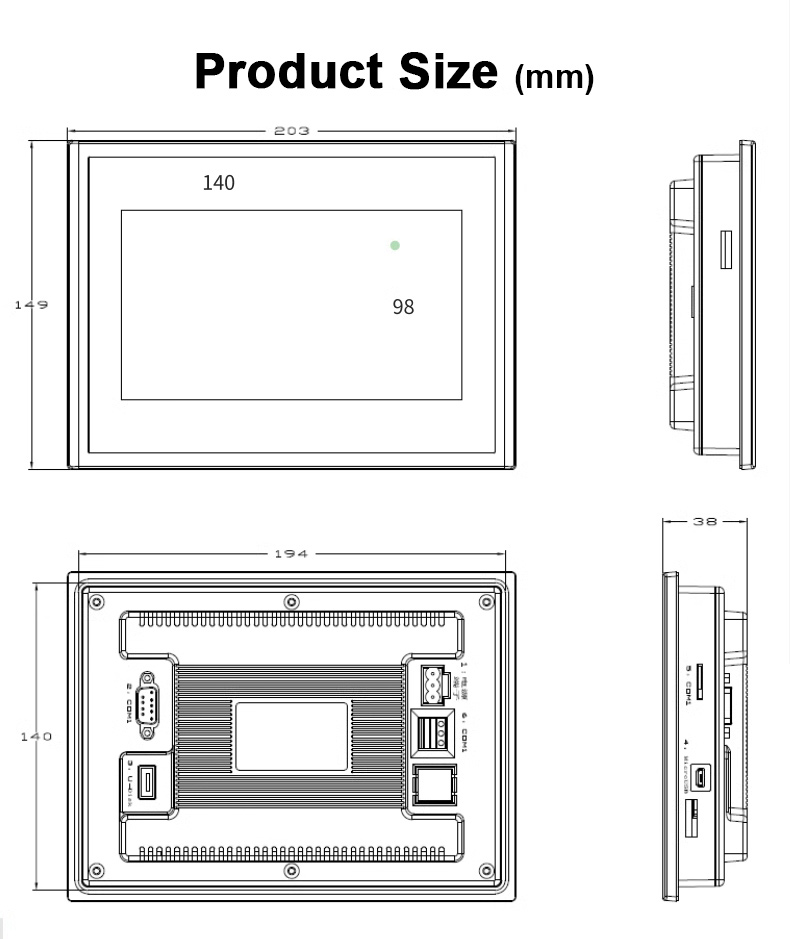 - Touch screen: 4-wire industrial electronic touch screen (surface hardness 4H), support capacitive touch screen