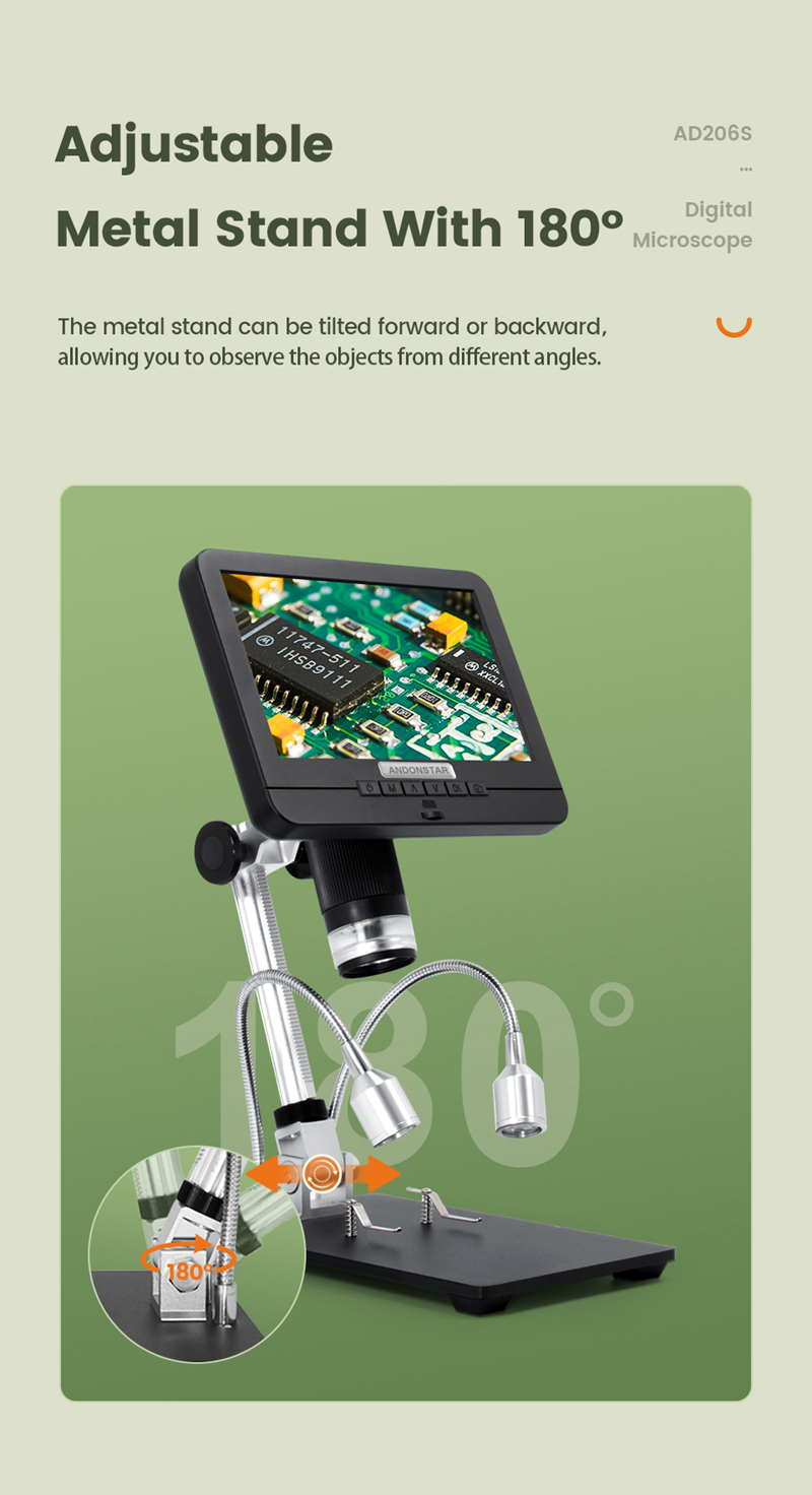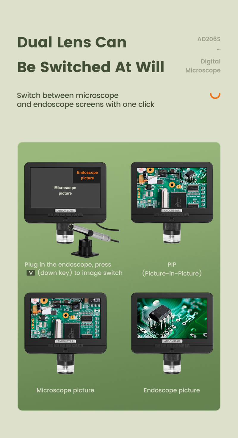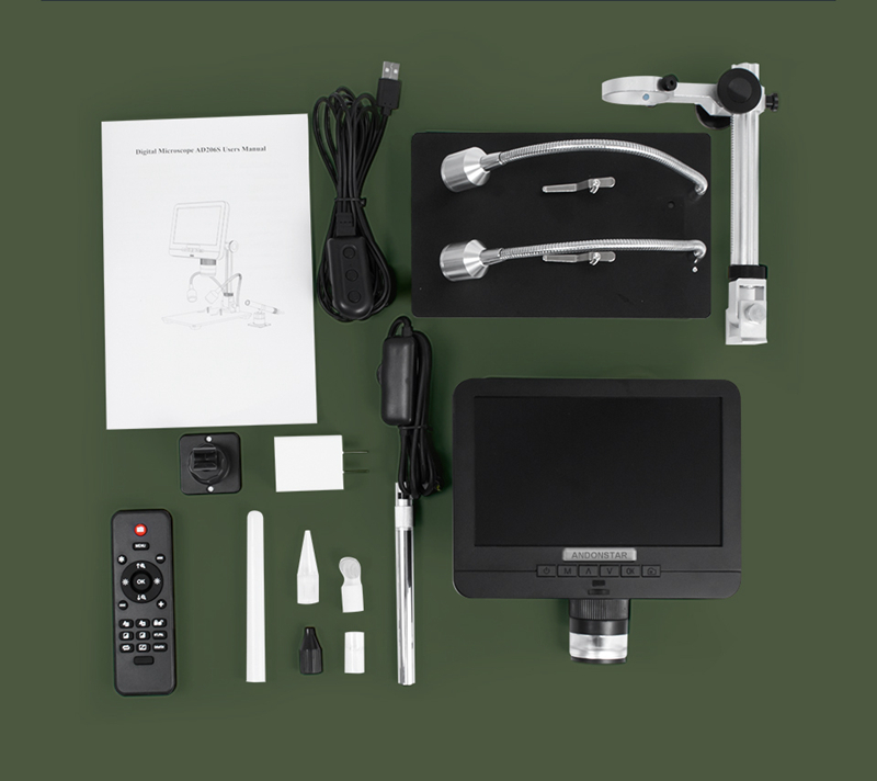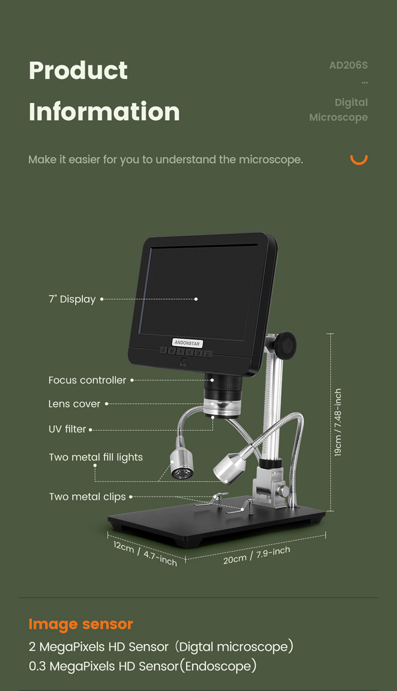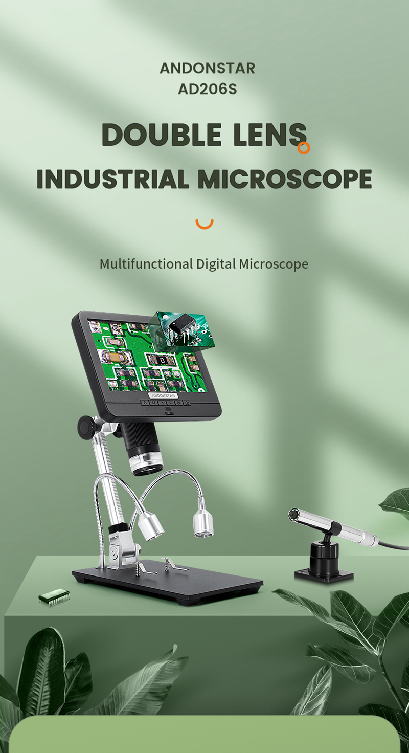 Andonstar AD206S 50X 2MP Industrial Digital Microscope USB Endoscope Dual-Lens Display 7" Screen