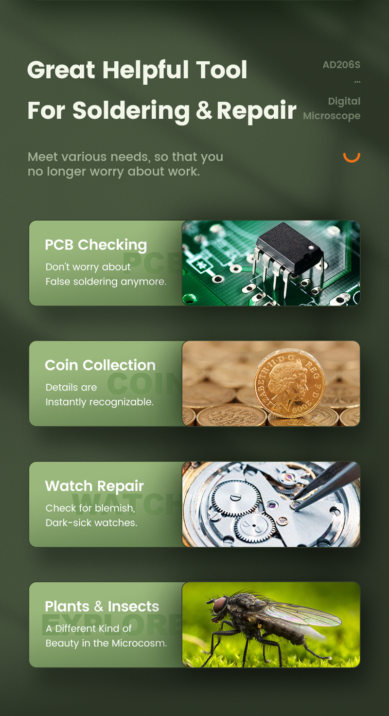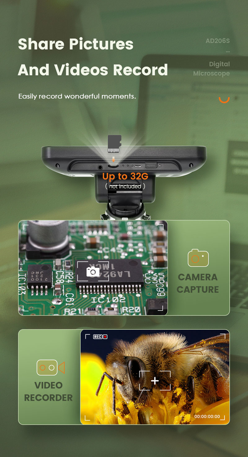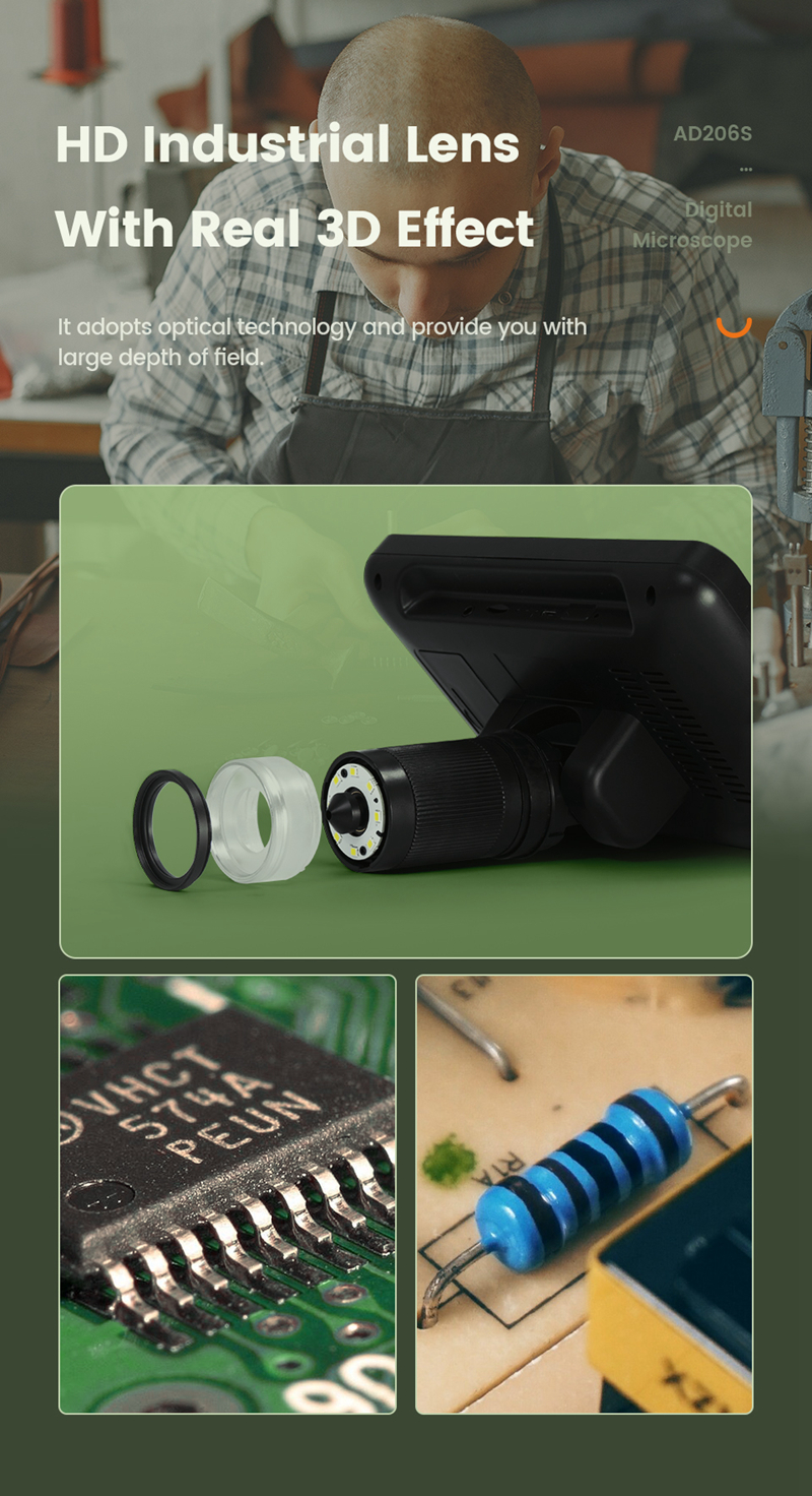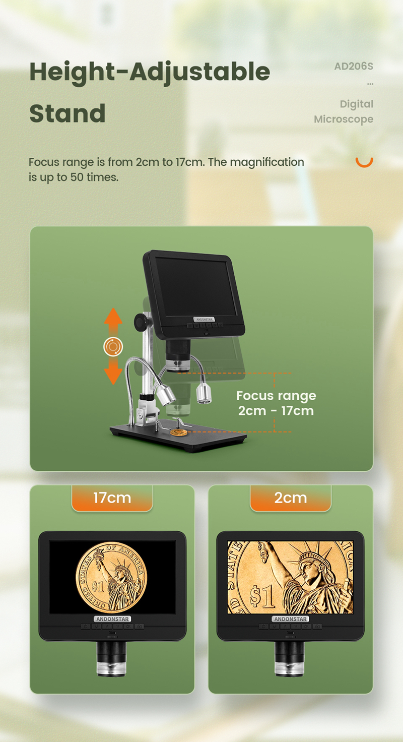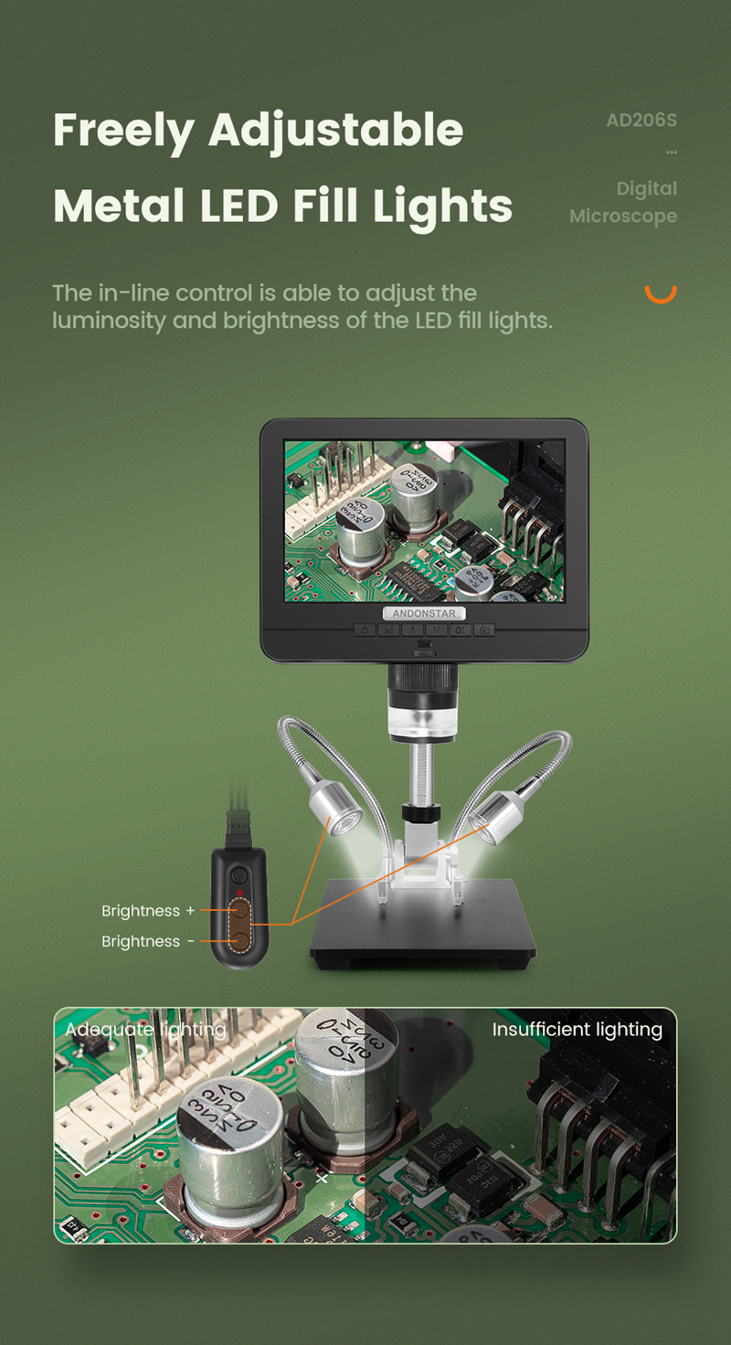 Andonstar AD206S 50X 2MP Industrial Digital Microscope USB Endoscope Dual-Lens Display 7" Screen
