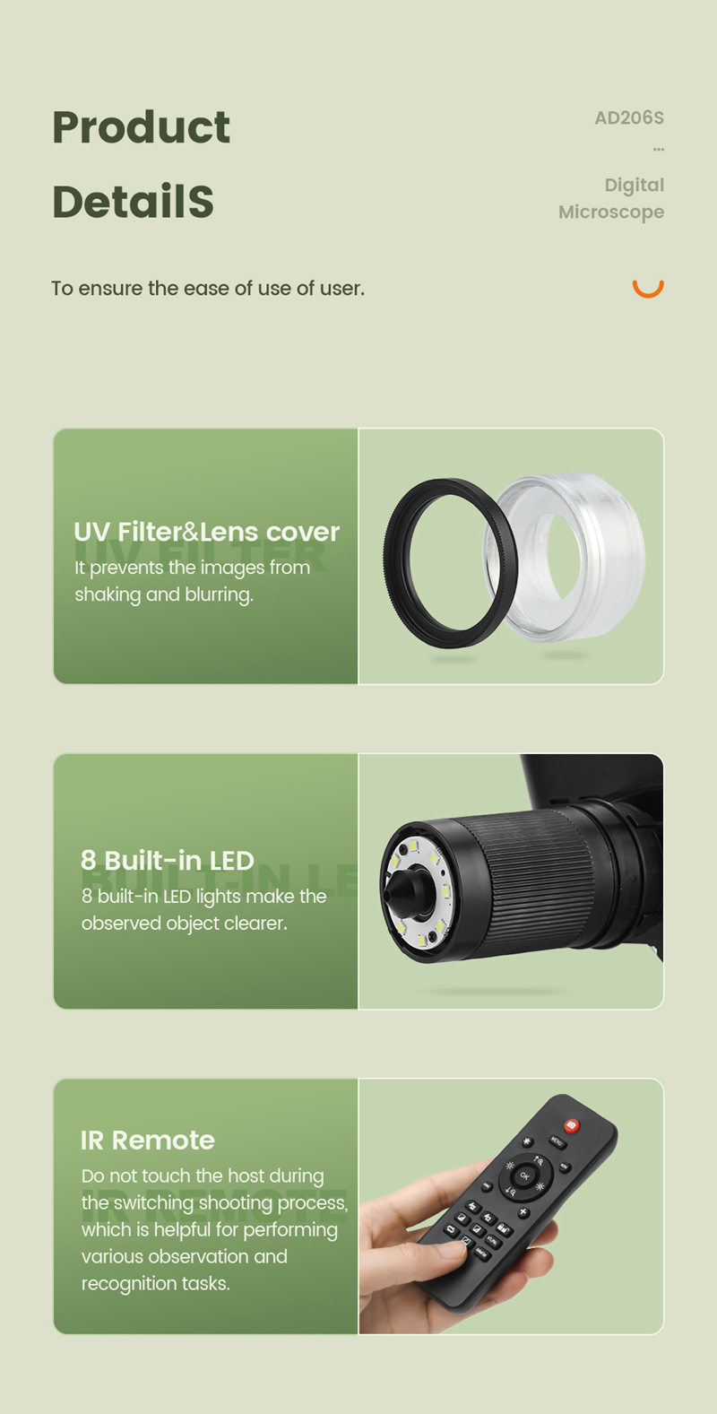 - Light source: 8 built-in LED& 2 LED with the stand