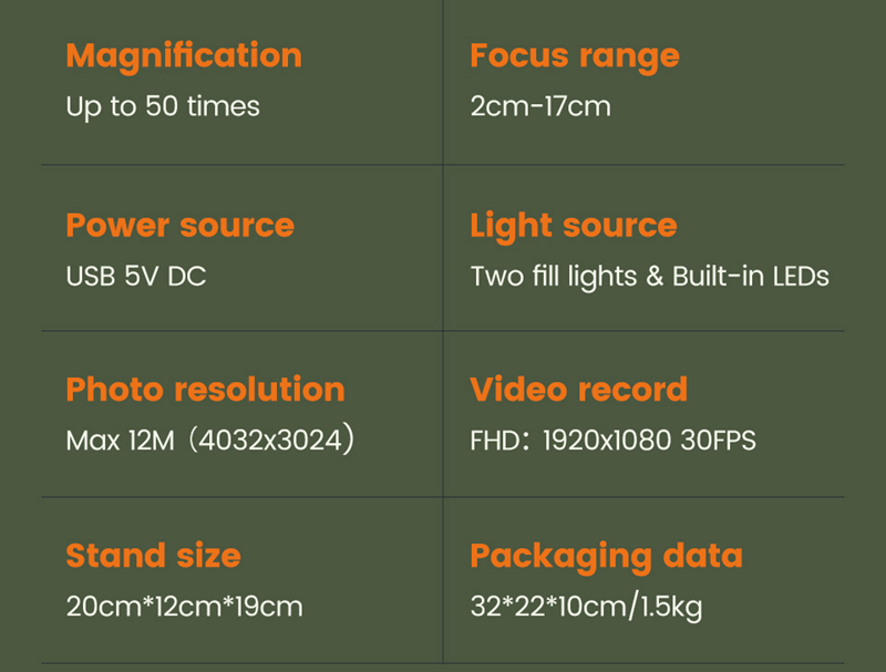 - Image sensor: 2MP HD Sensor (Digital microscope). 0.3MP HD Sensor (Endoscope)