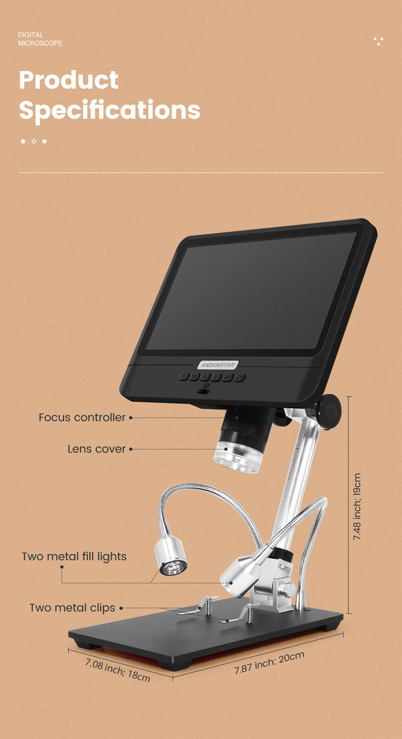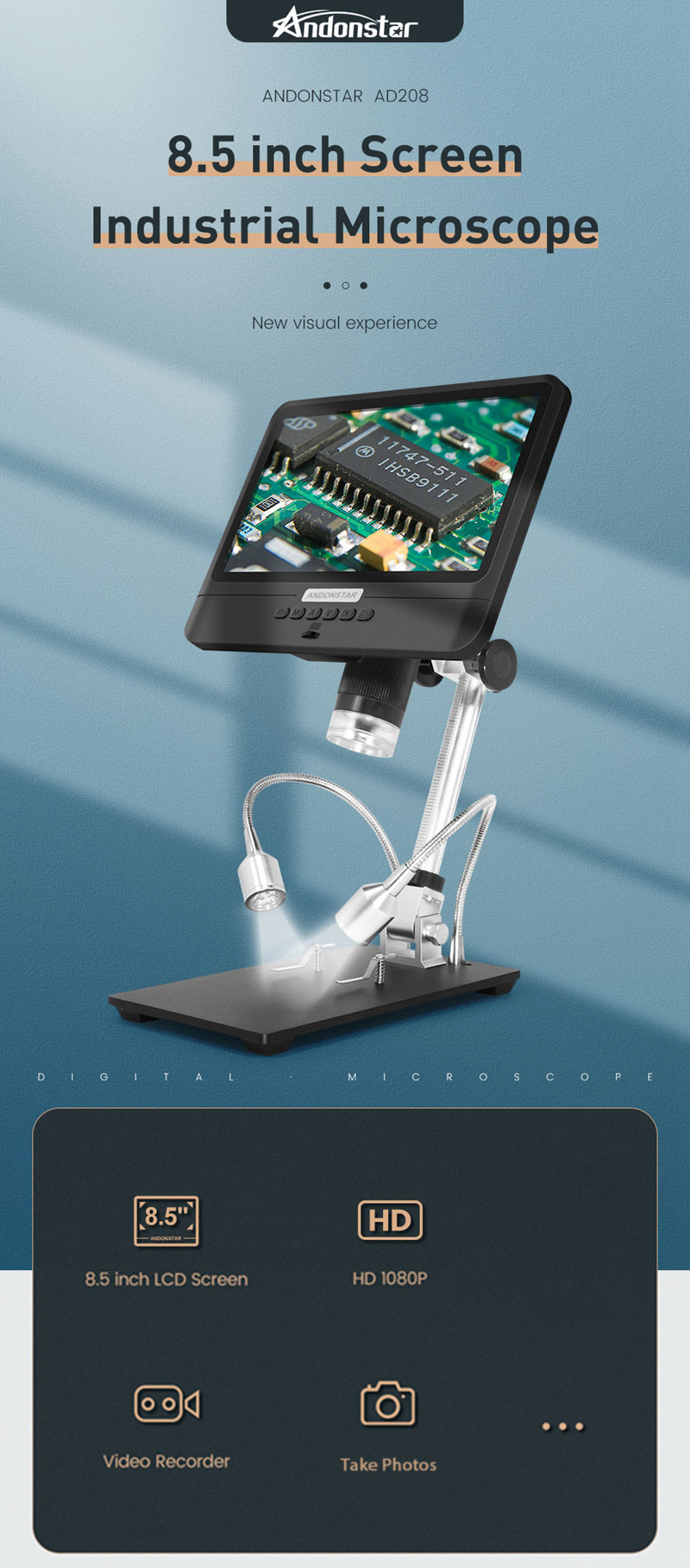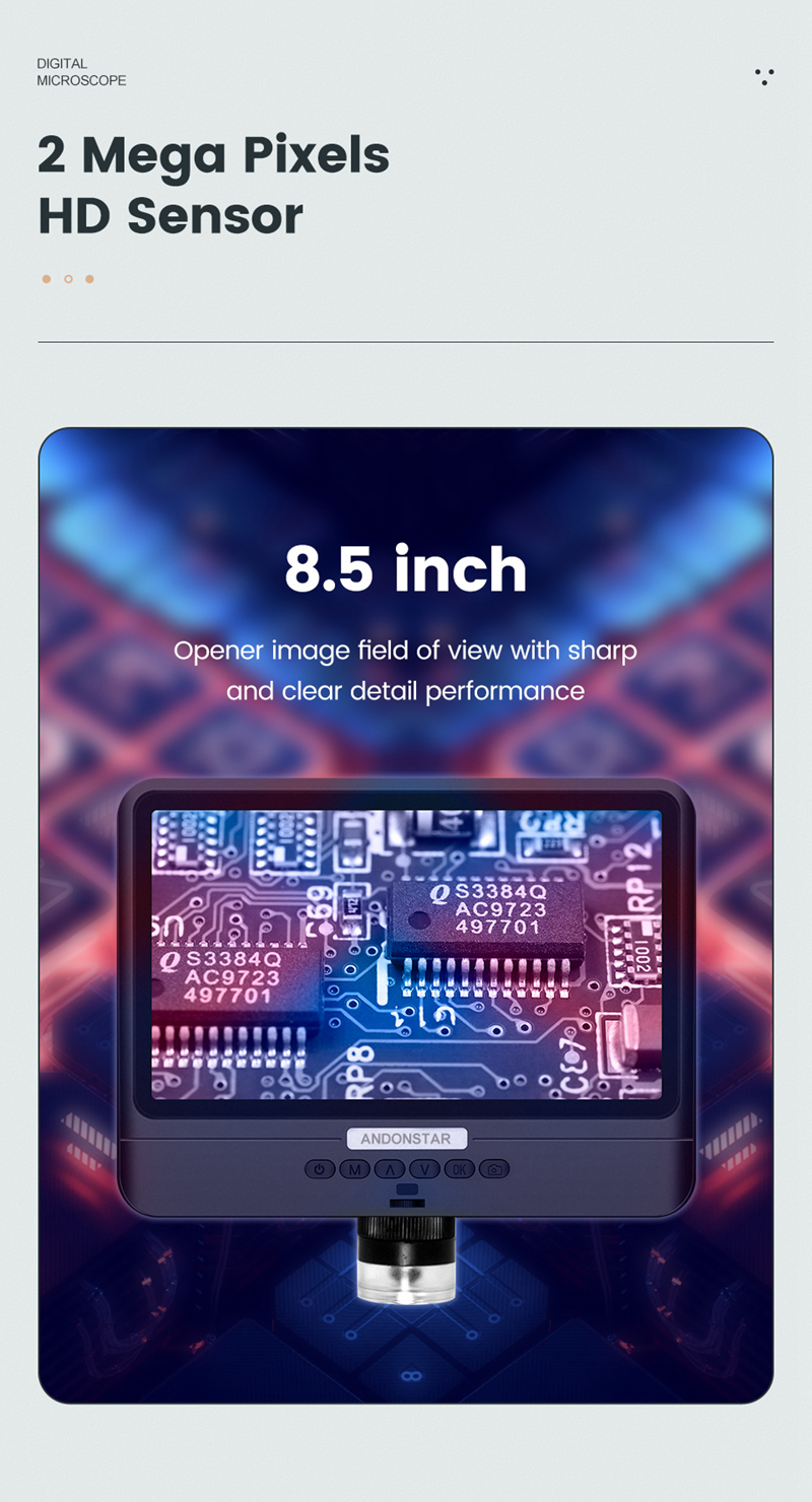 Andonstar AD208 2MP USB Digital Microscope 5X-260X With 8.5" LCD 1080P For Repair PCB Soldering SMD
