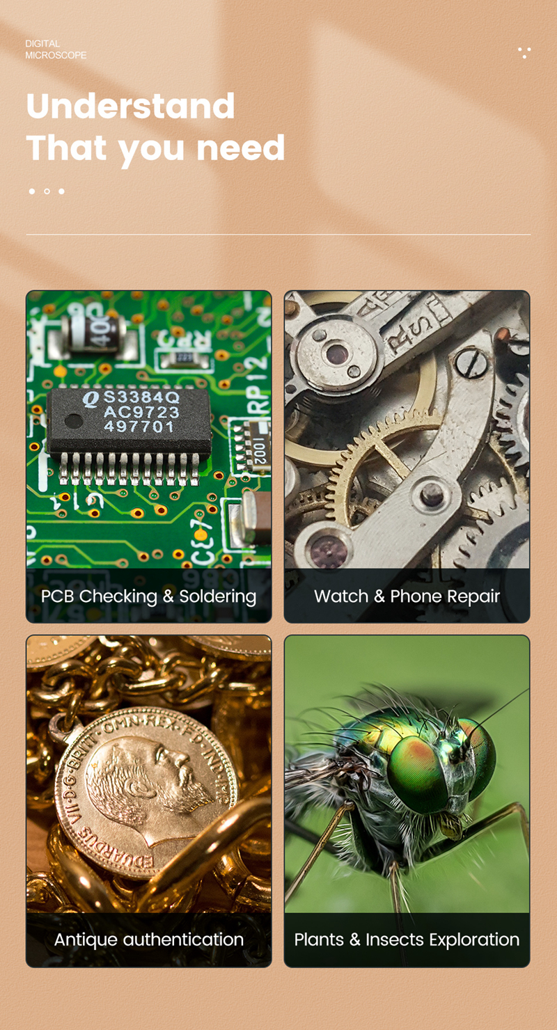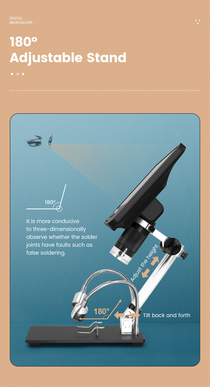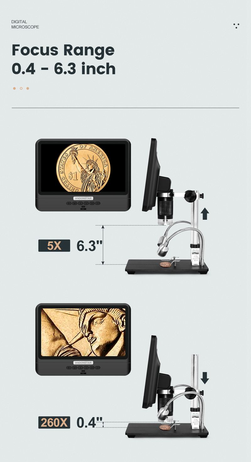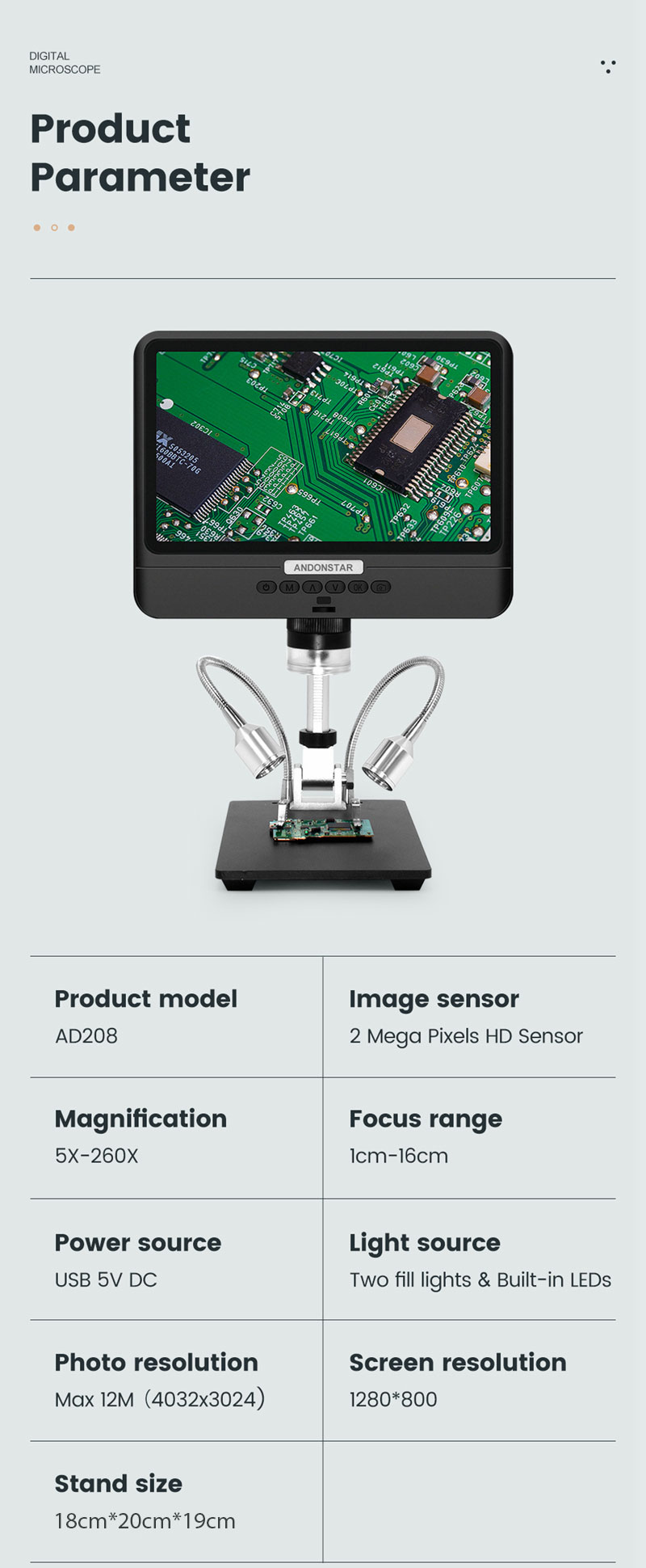 Andonstar AD208 2MP USB Digital Microscope 5X-260X With 8.5" LCD 1080P For Repair PCB Soldering SMD