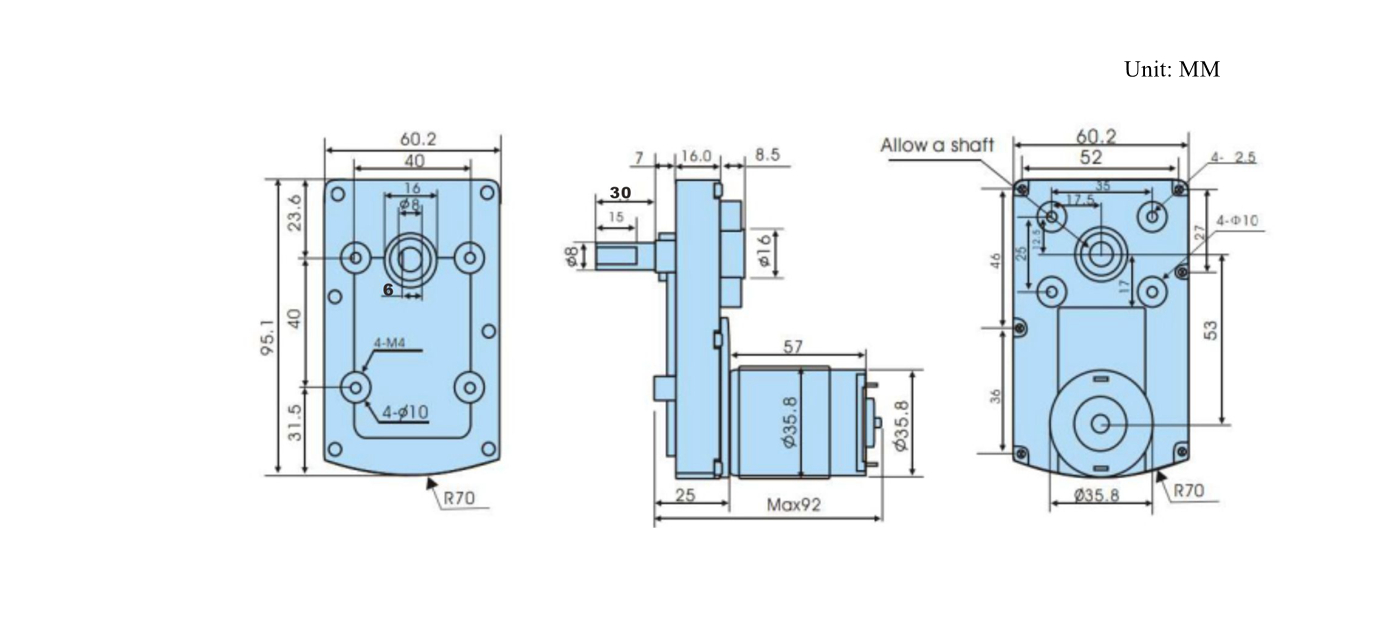 - Materials: Gear and shaft: alloy steel; gear box body: cast aluminum
