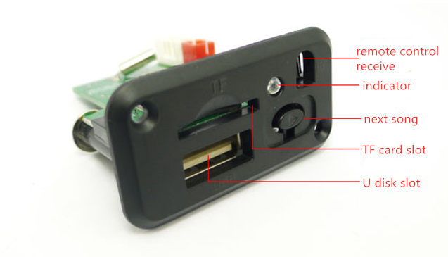 -Button support: previous song, next song, volume adjustment, play/pause, stop, single repeat, mute, shutdown, direct song selection.