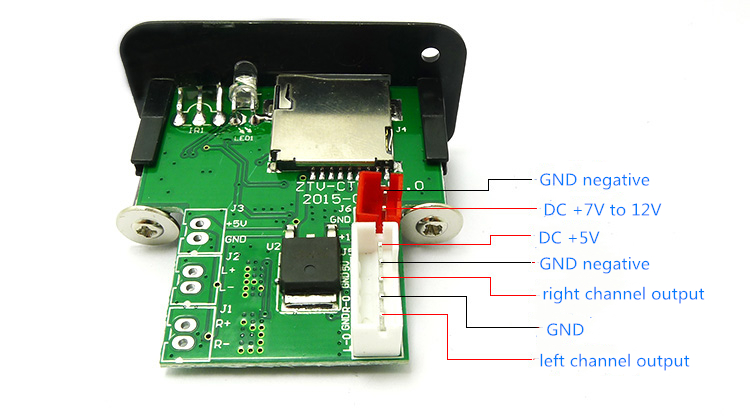 Audio Decoder Board Stereo Audio Receiver Module Support WAV MP3 TF U Disk 12V 5V Optional w/ Switch
