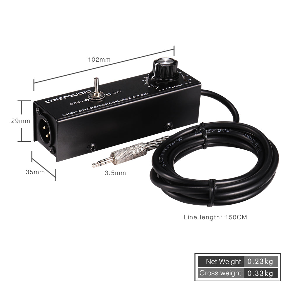 - 3.5mm input port to microphone-level balance signal XLR port.