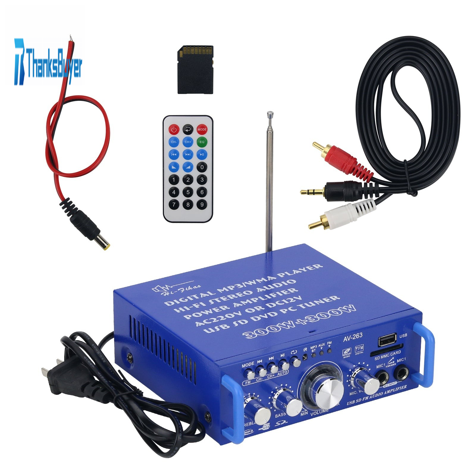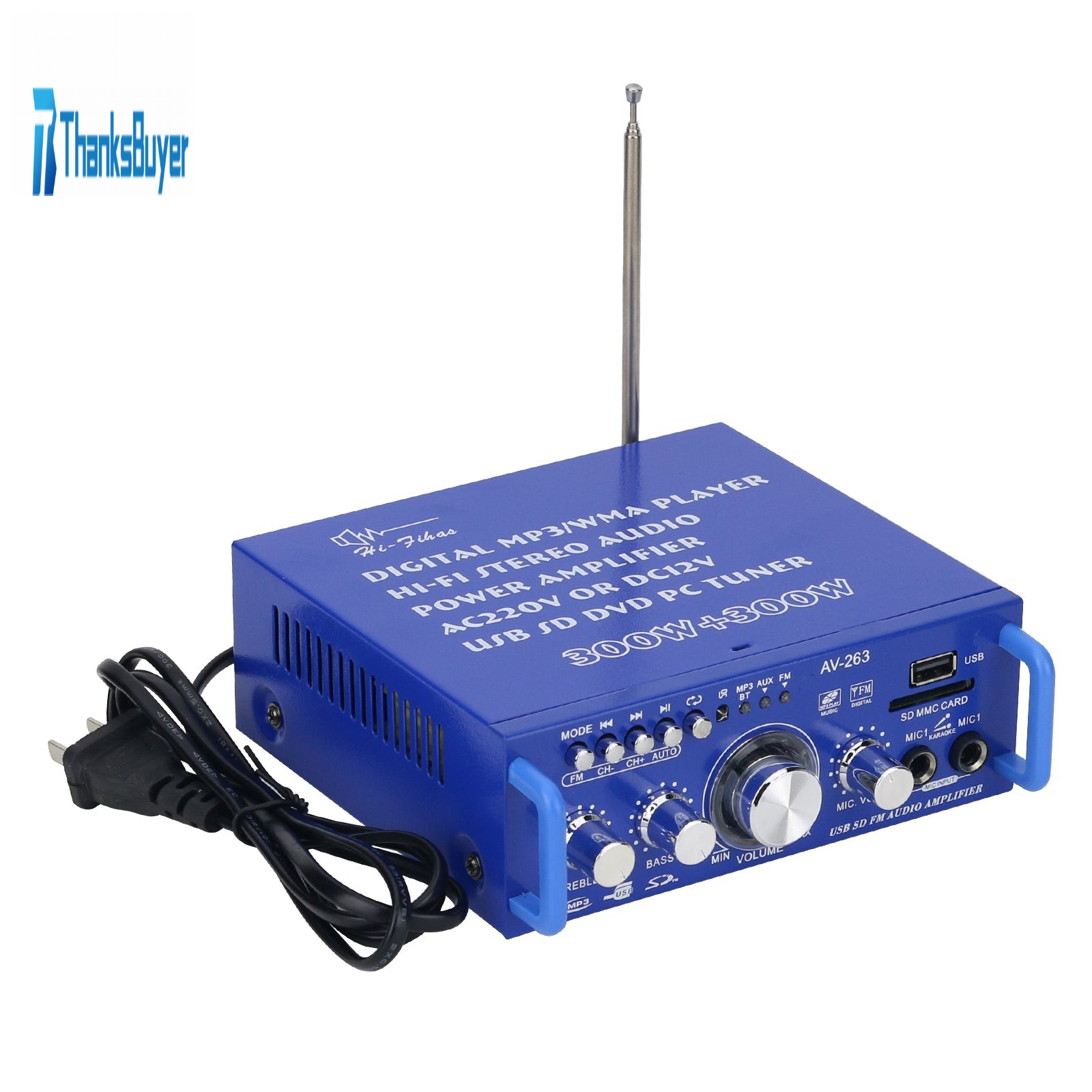 AV-263B 300W + 300W Bluetooth Amplifier Power Amp USB SD FM Audio Amplifier for Two Microphones