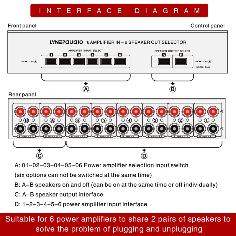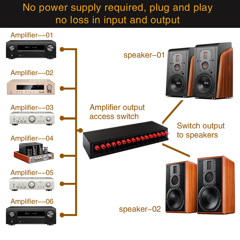 B046 Passive Amplifier Speaker Selector 6 Amplifier IN 2 Speaker OUT Selector Lossless Sound Quality