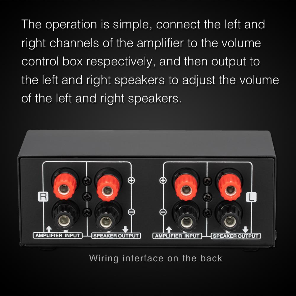 6. Simple for operating, after the left and right sound channel of the amplifier is connected respectively in volume control box, the output of the left and right sound box realizes volume to adjust the volume size of the left and right sound box respectively.