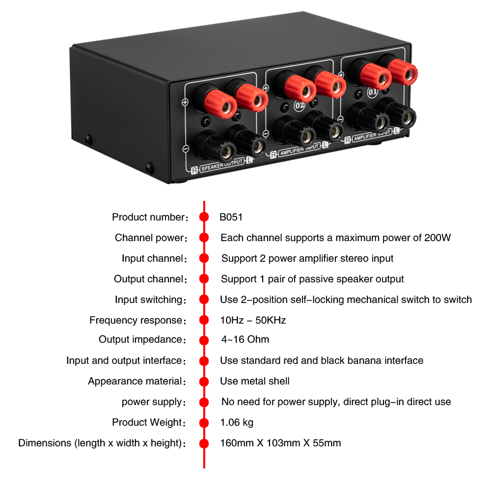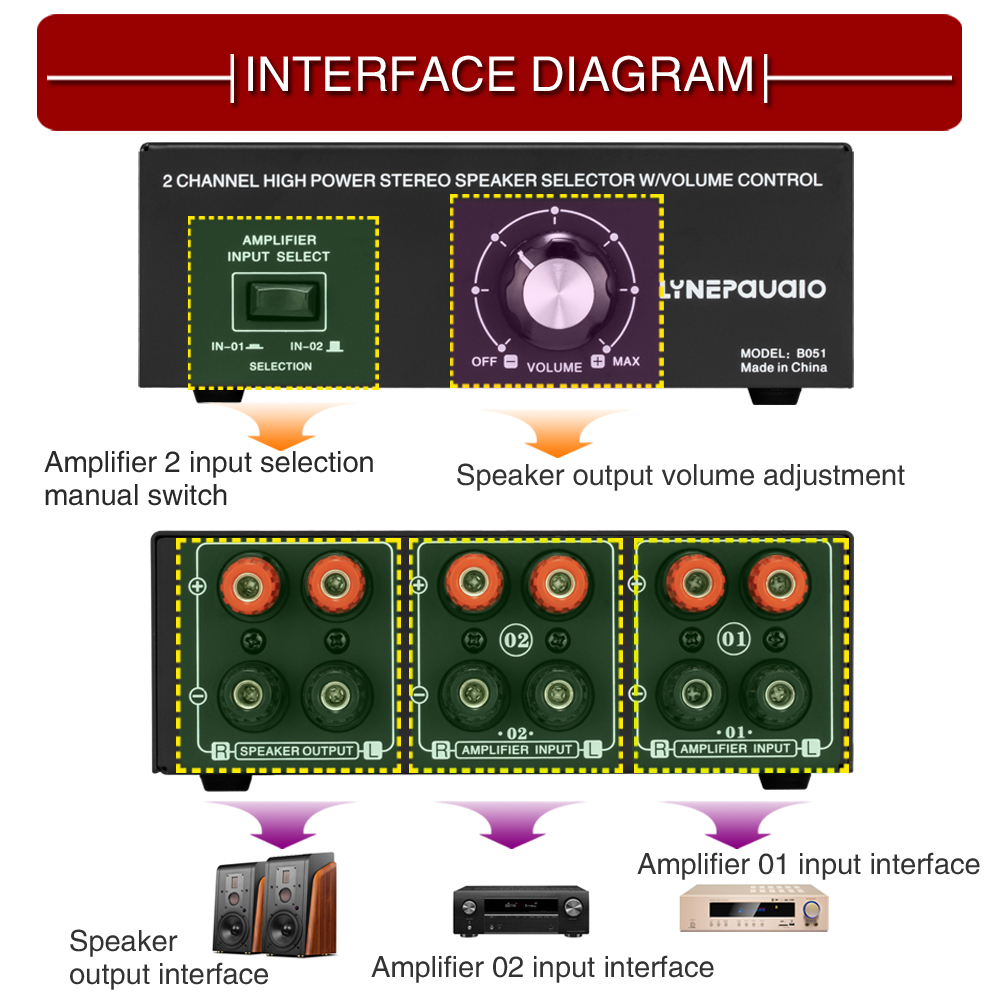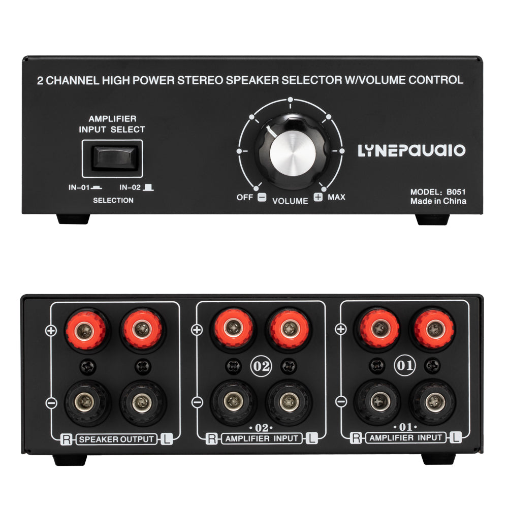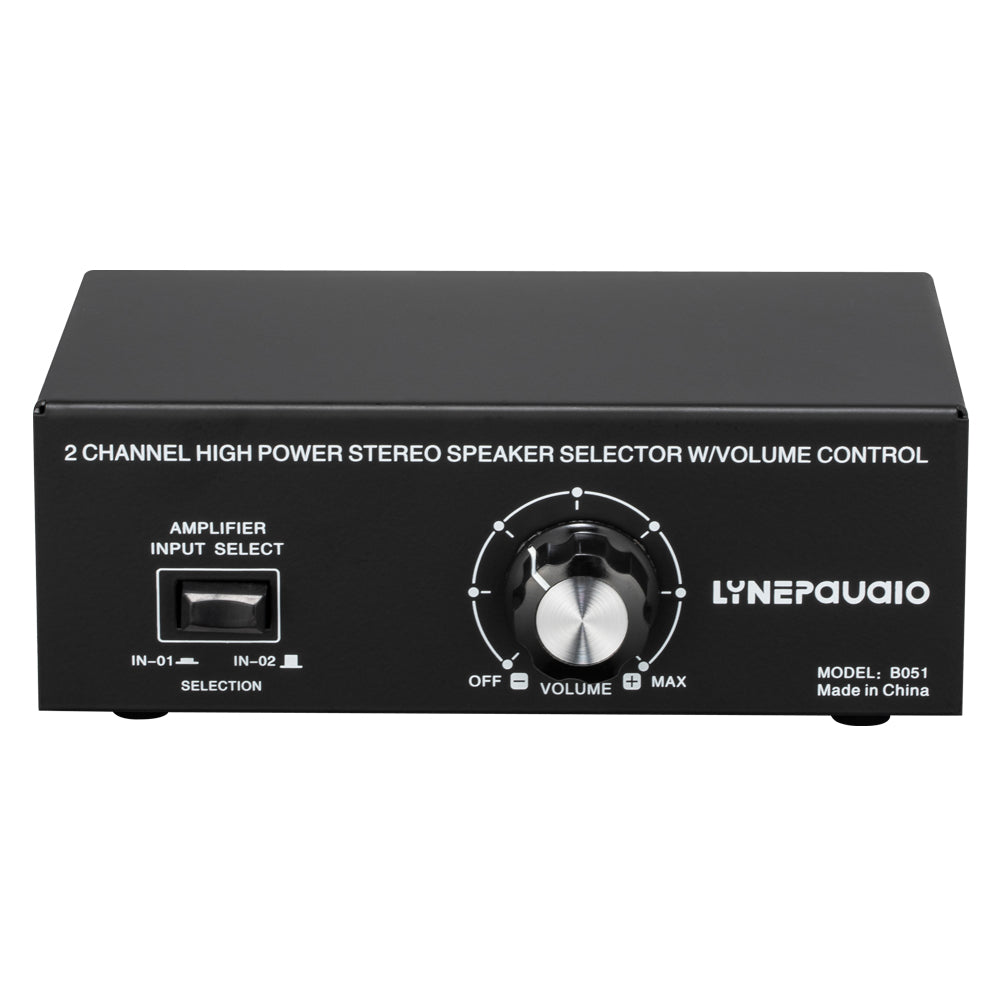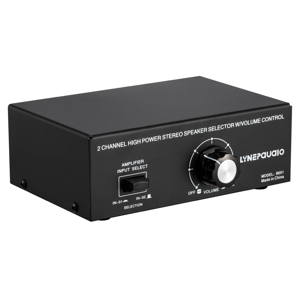 B051 2 In 1 Out Amplifier Selector 2 Channel High-Power Stereo Speaker Selector w/ Volume Control